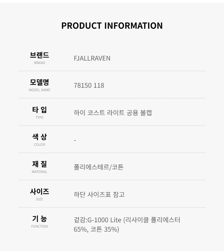 피엘라벤 78150 118 하이 코스트 라이트 볼캡 모자