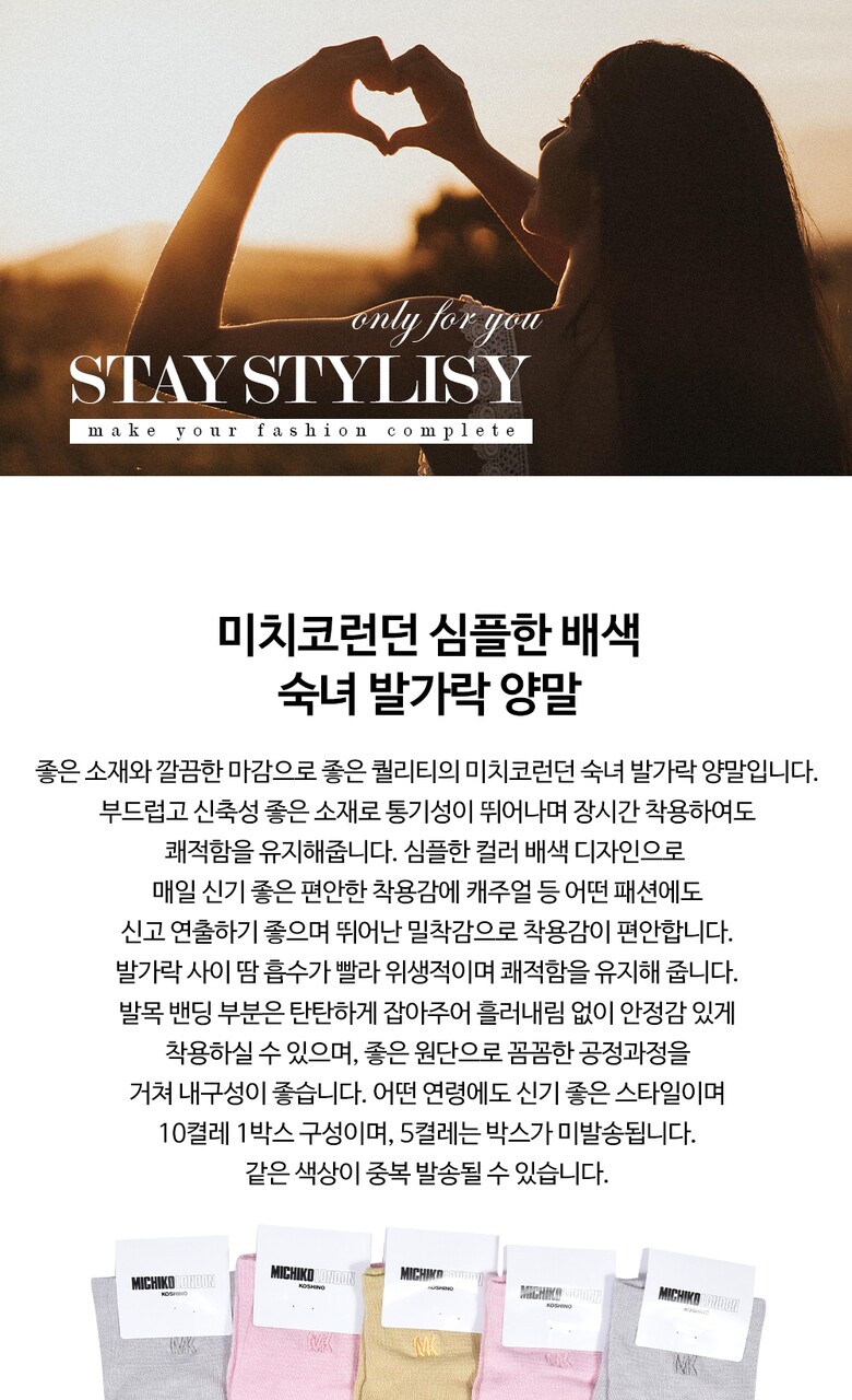 미치코런던 심플한 배색 숙녀 발가락 양말0015hw
