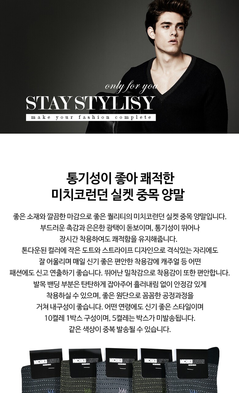 미치코런던 통기성이 좋아 쾌적한 실켓 중목 신사 양말0058nd
