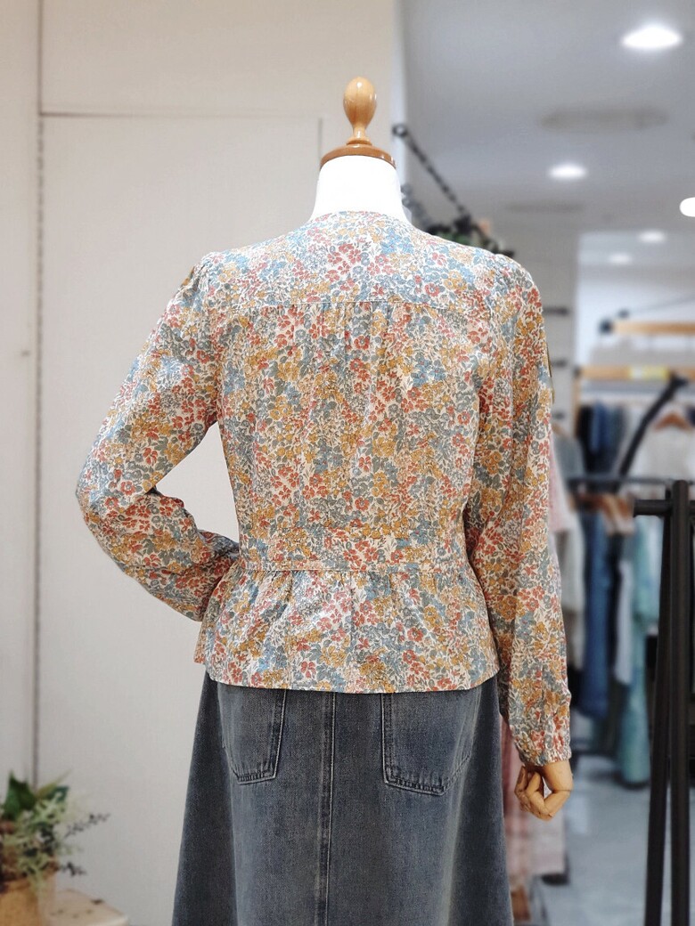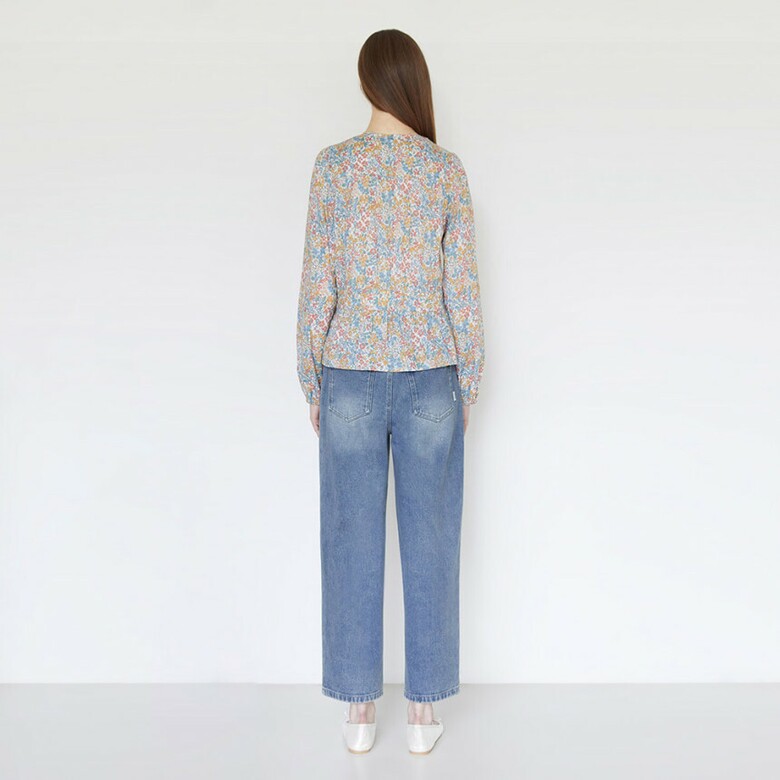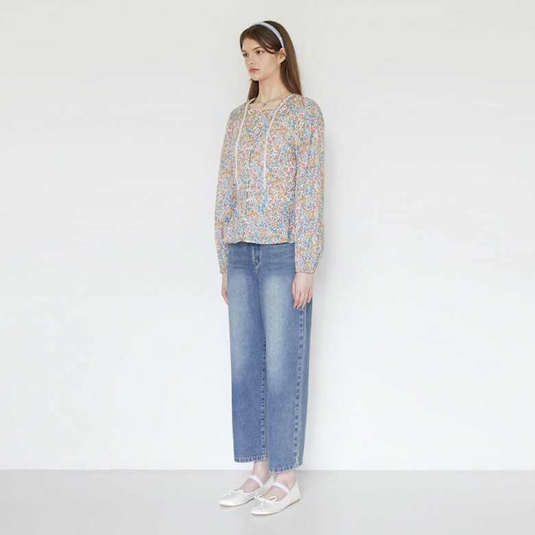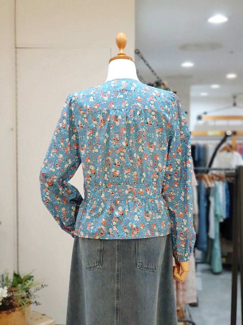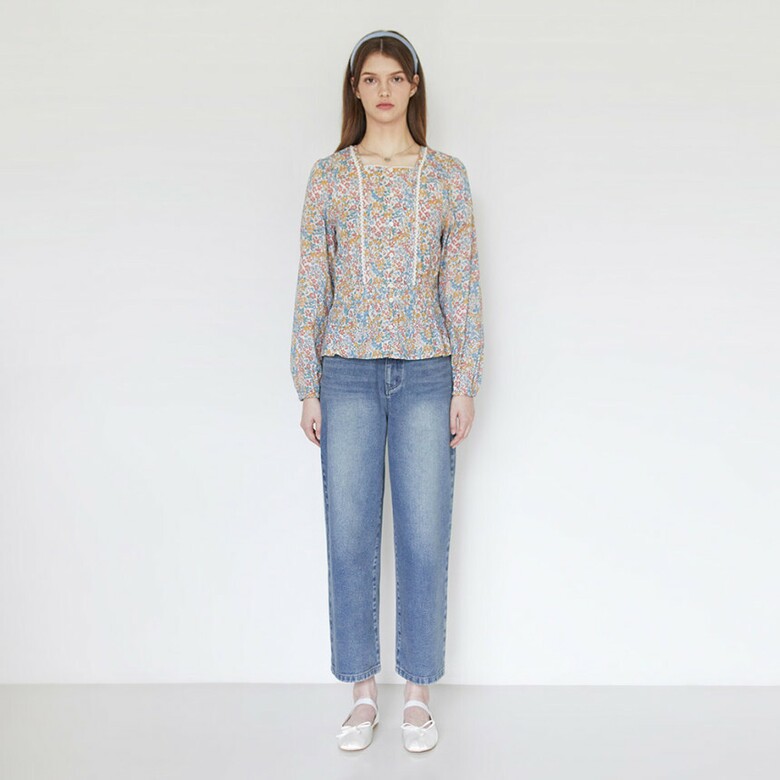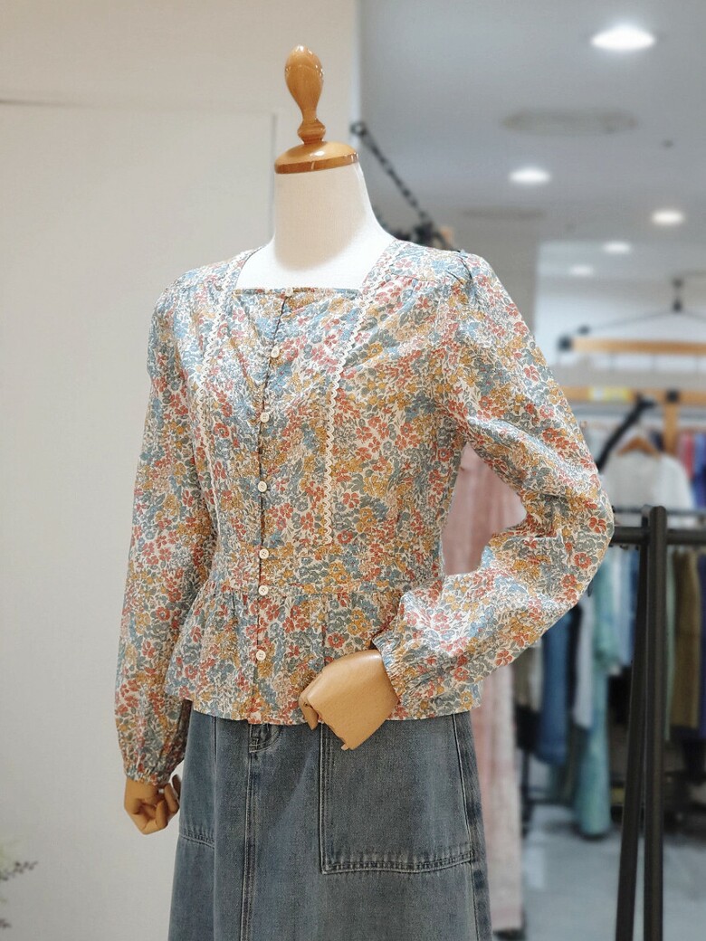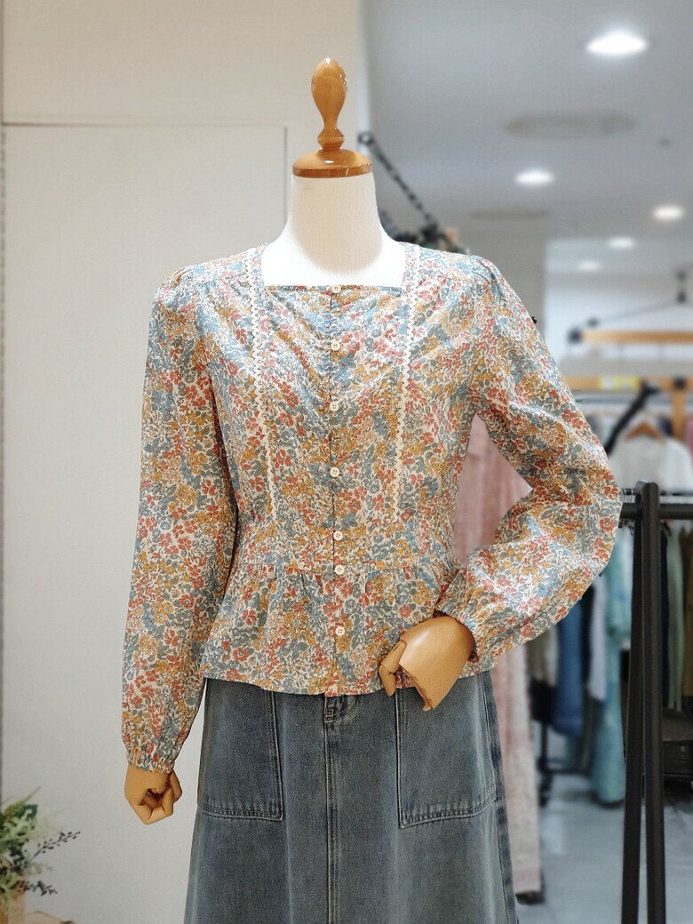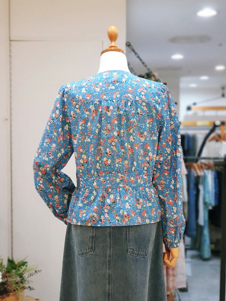유니크 콤비 플라워 블라우스 T246MBL141W