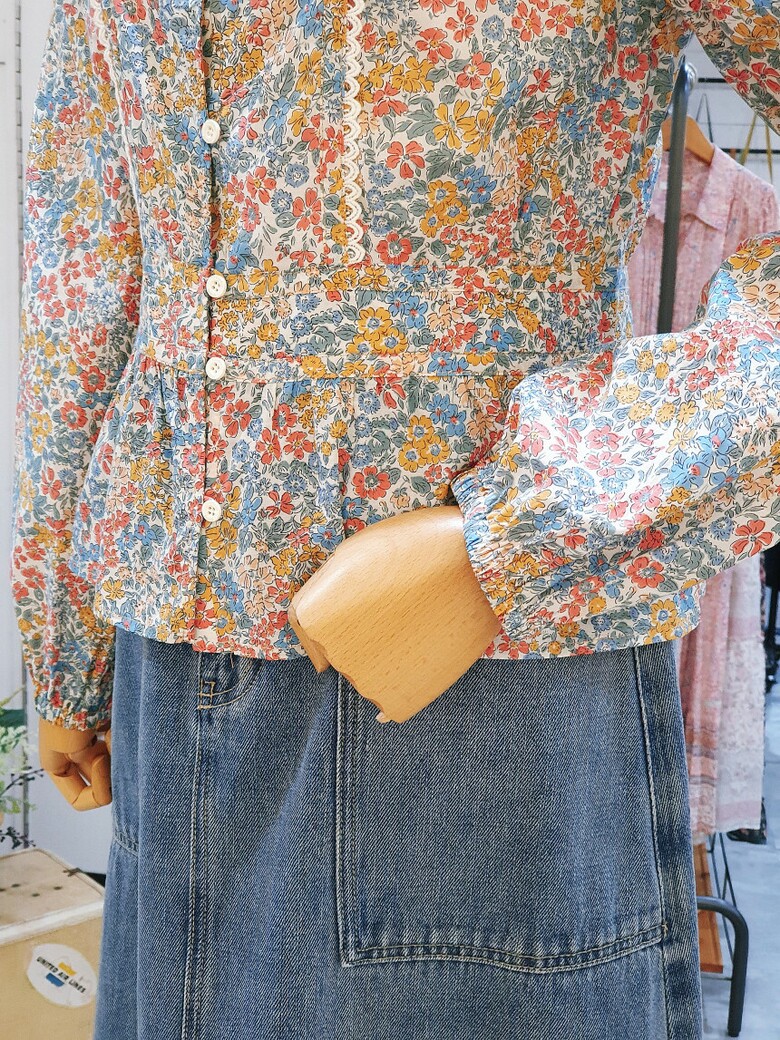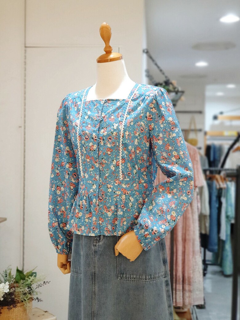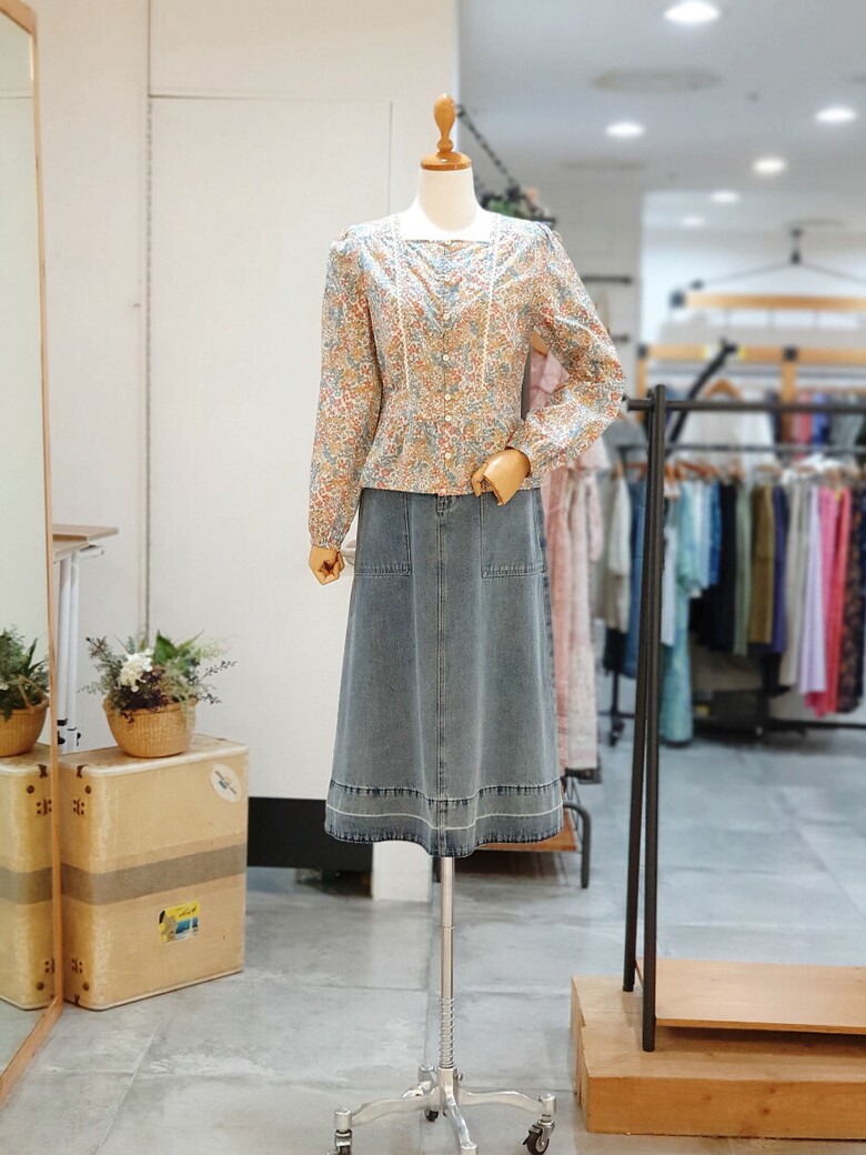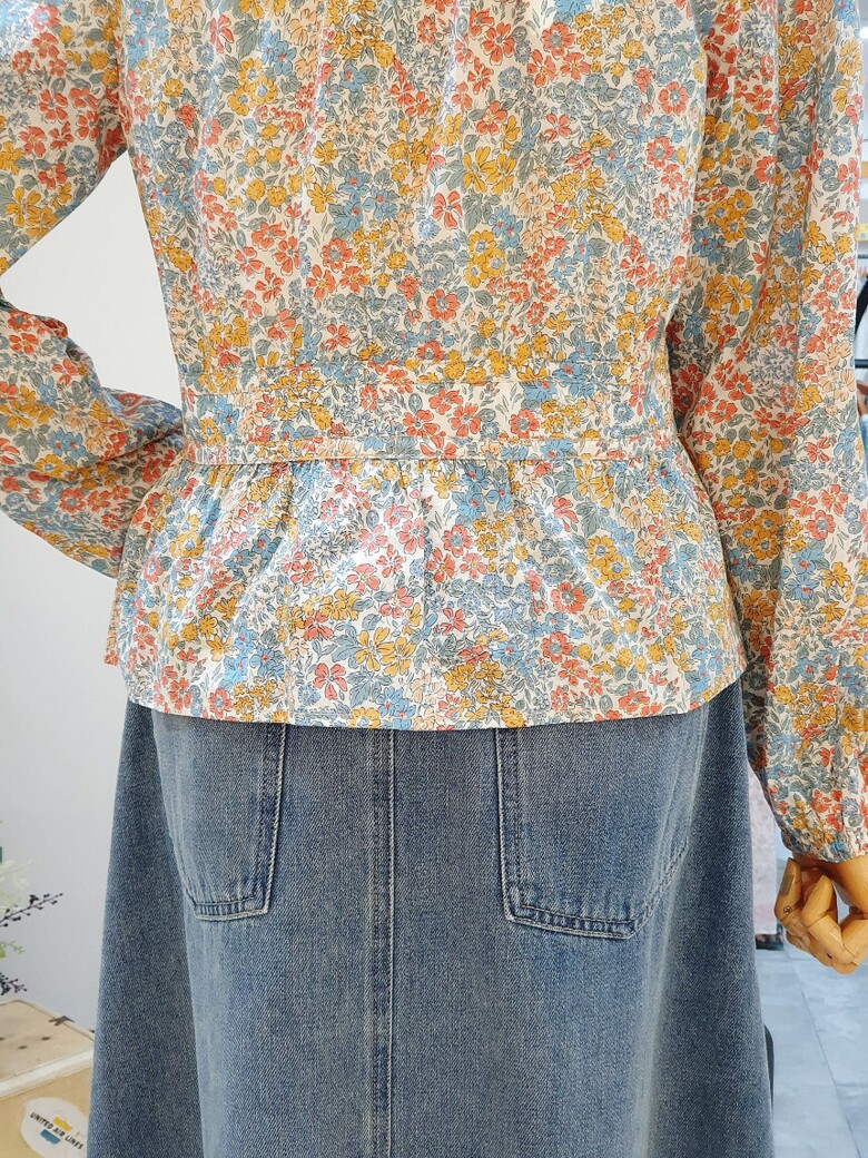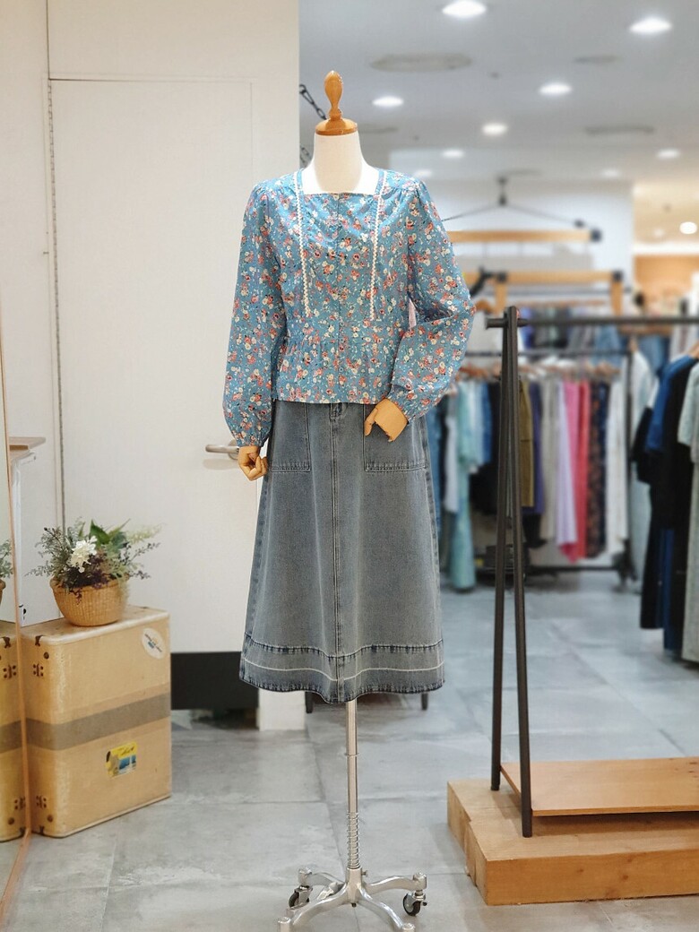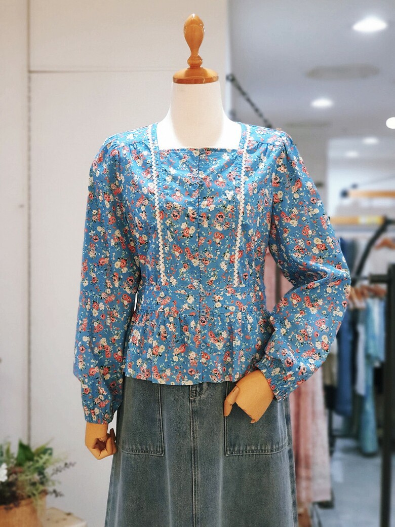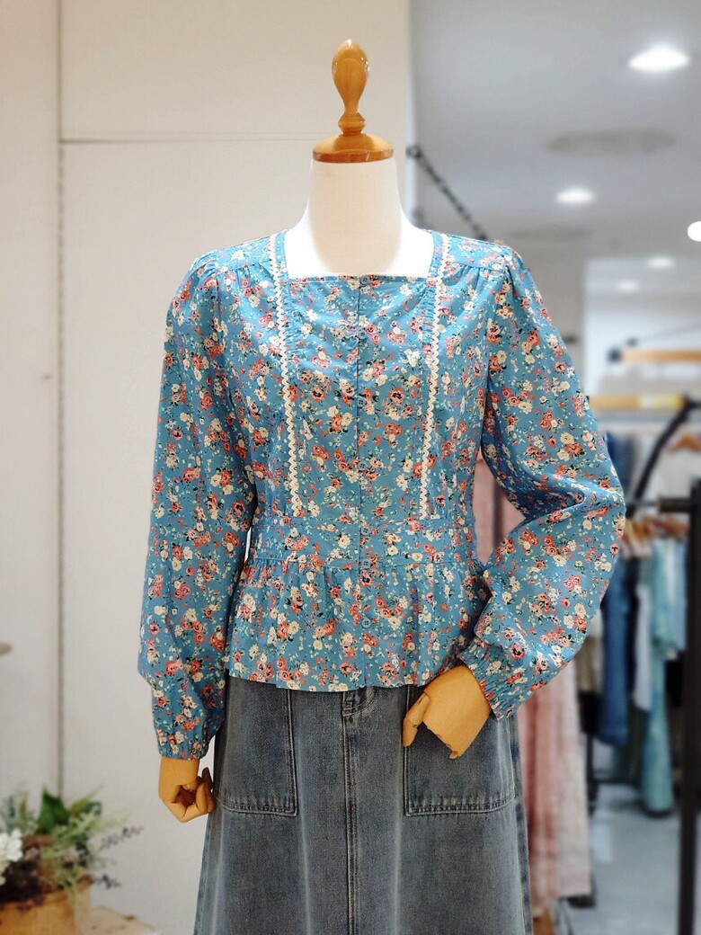 유니크 콤비 플라워 블라우스 T246MBL141W