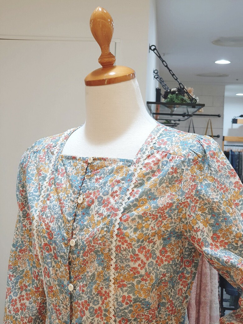 플라워 패턴에 배색 레이스가 포인트가 되는 아이템입니다.