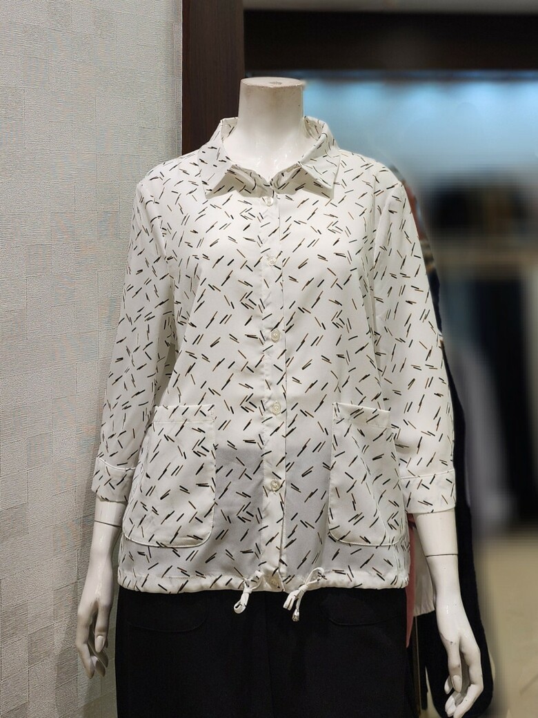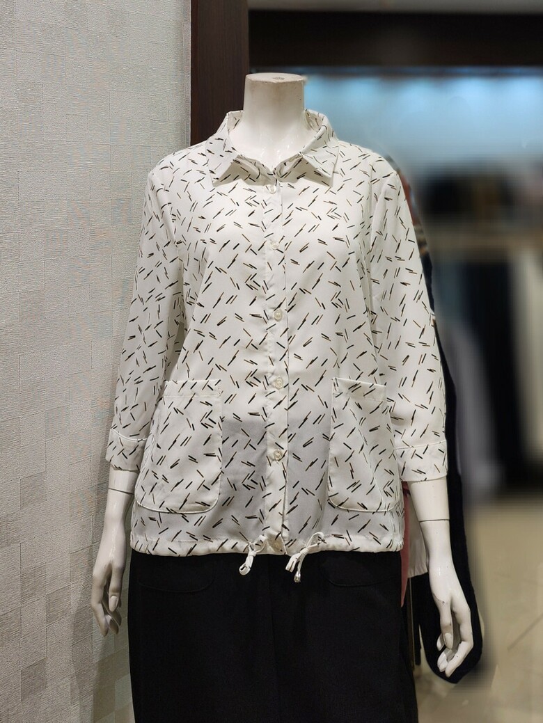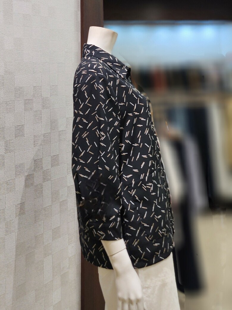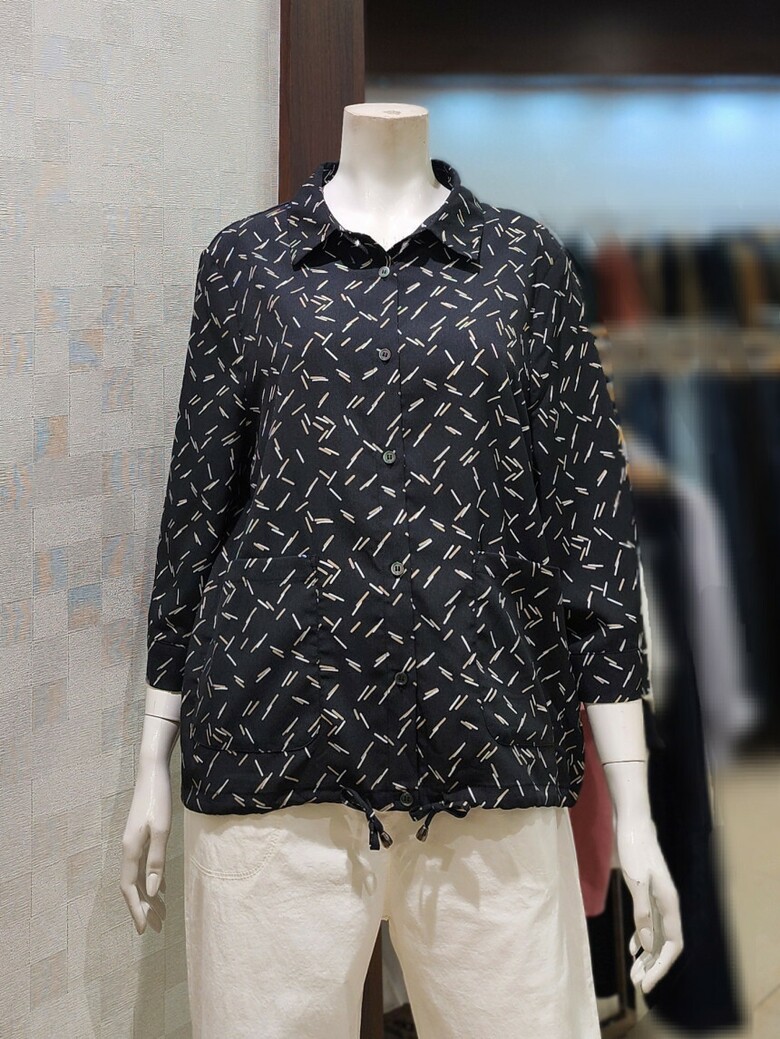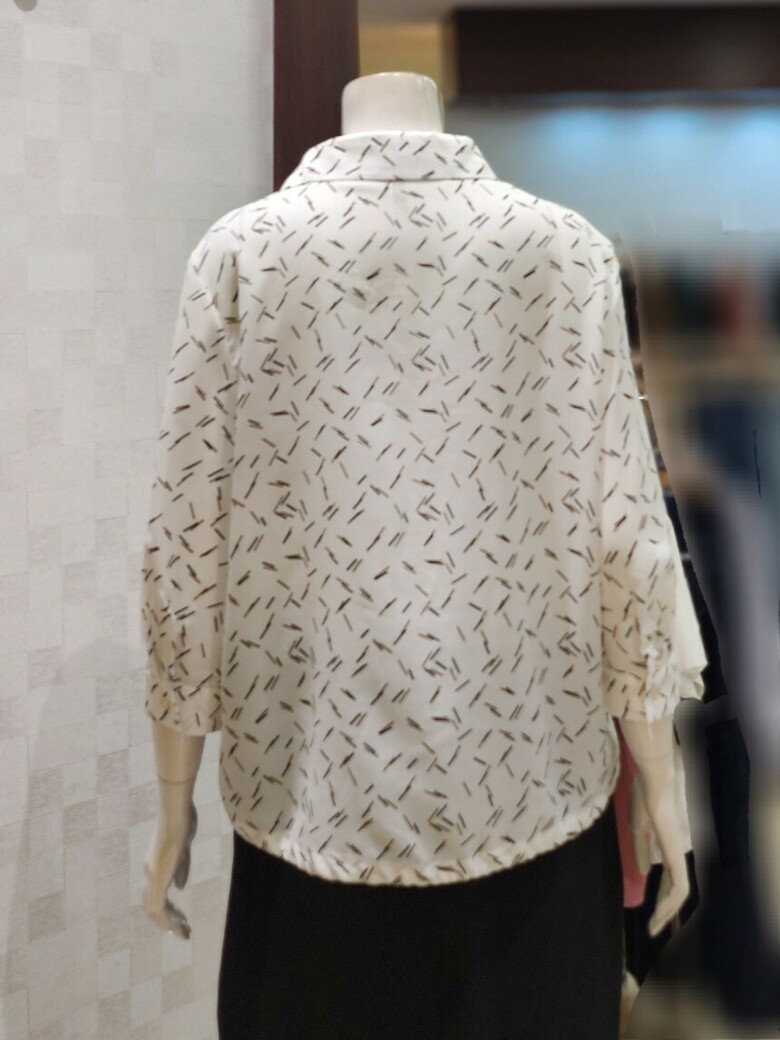 [벨라디터치] V9F3BL22 카라넥 프린트 블라우스