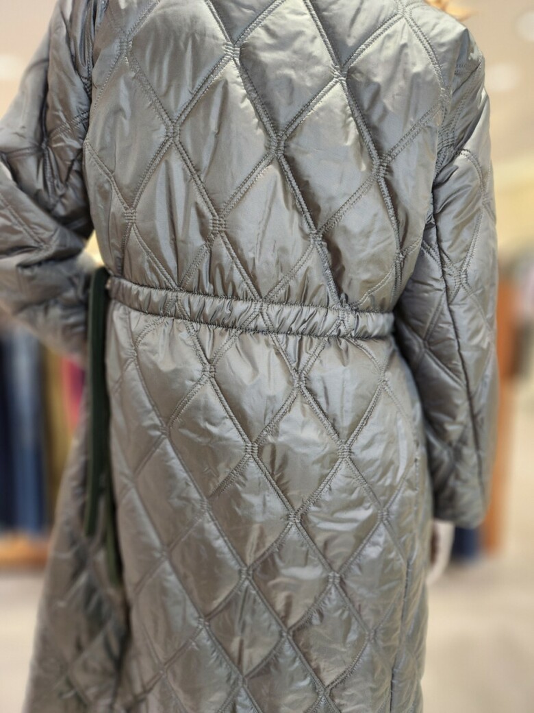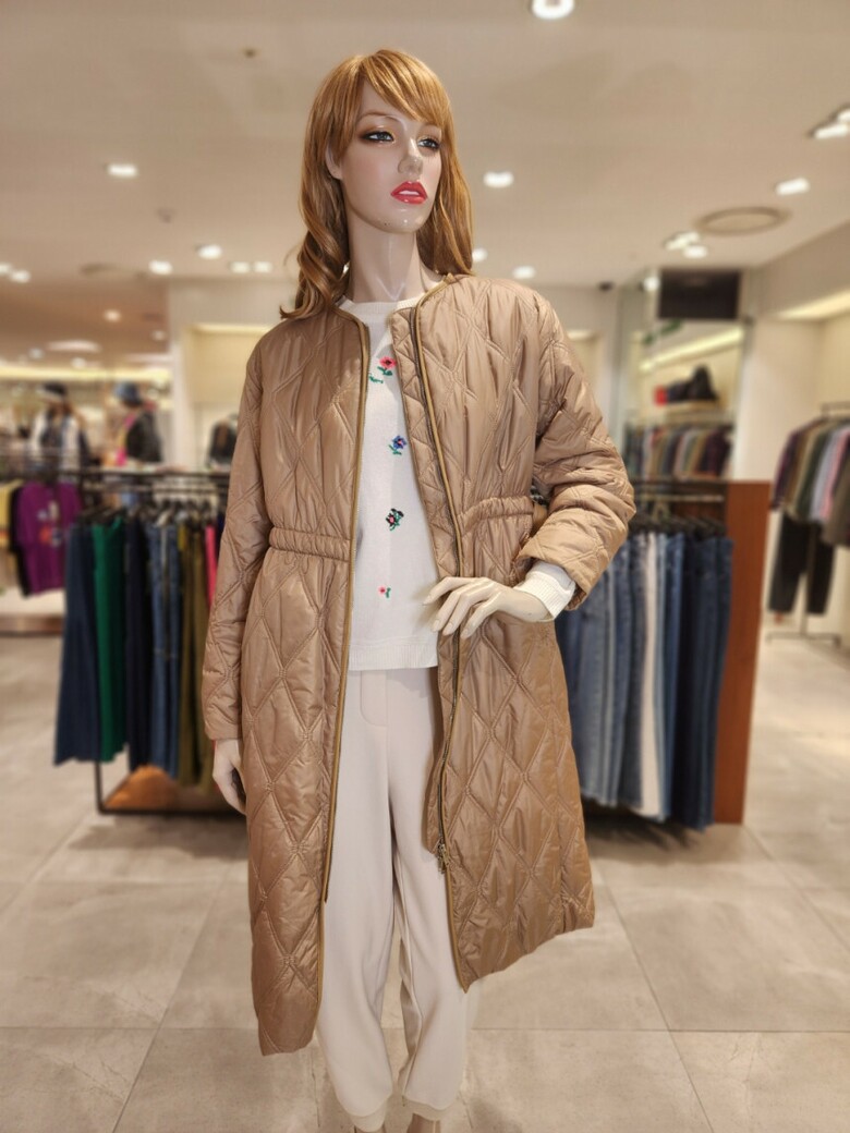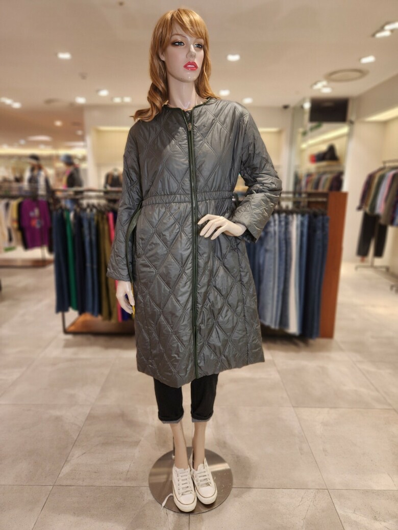 가벼운 무게의 솜 충전재를 누빈 롱 패딩점퍼입니다