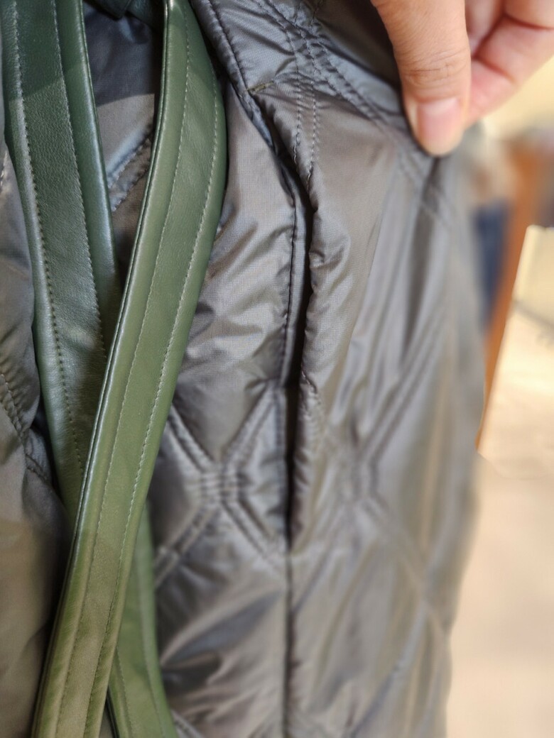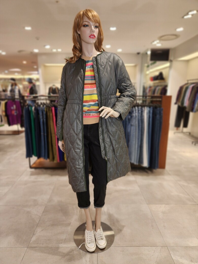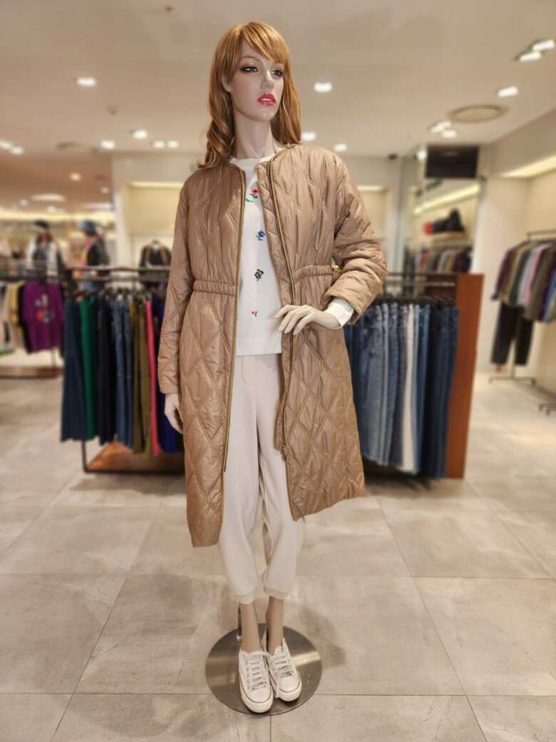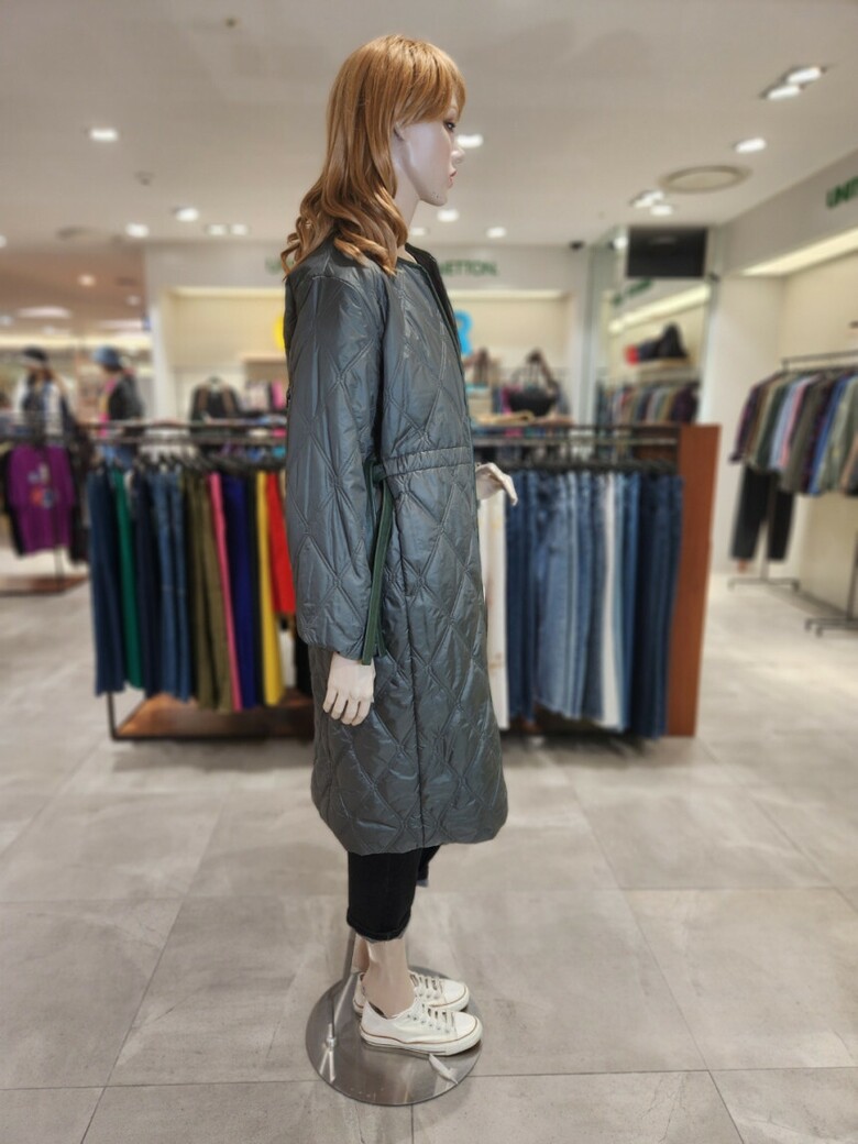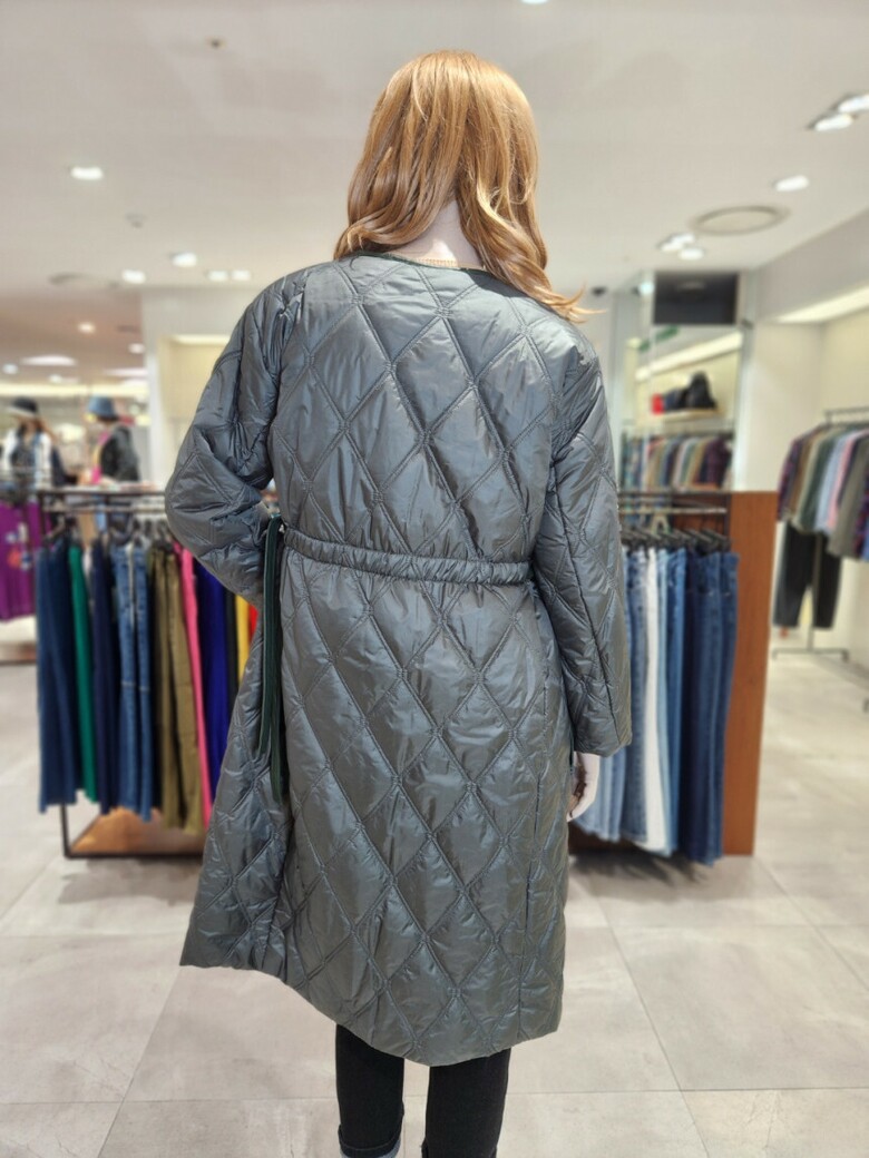 가벼운 무게의 솜 충전재를 누빈 롱 패딩점퍼입니다