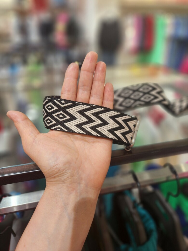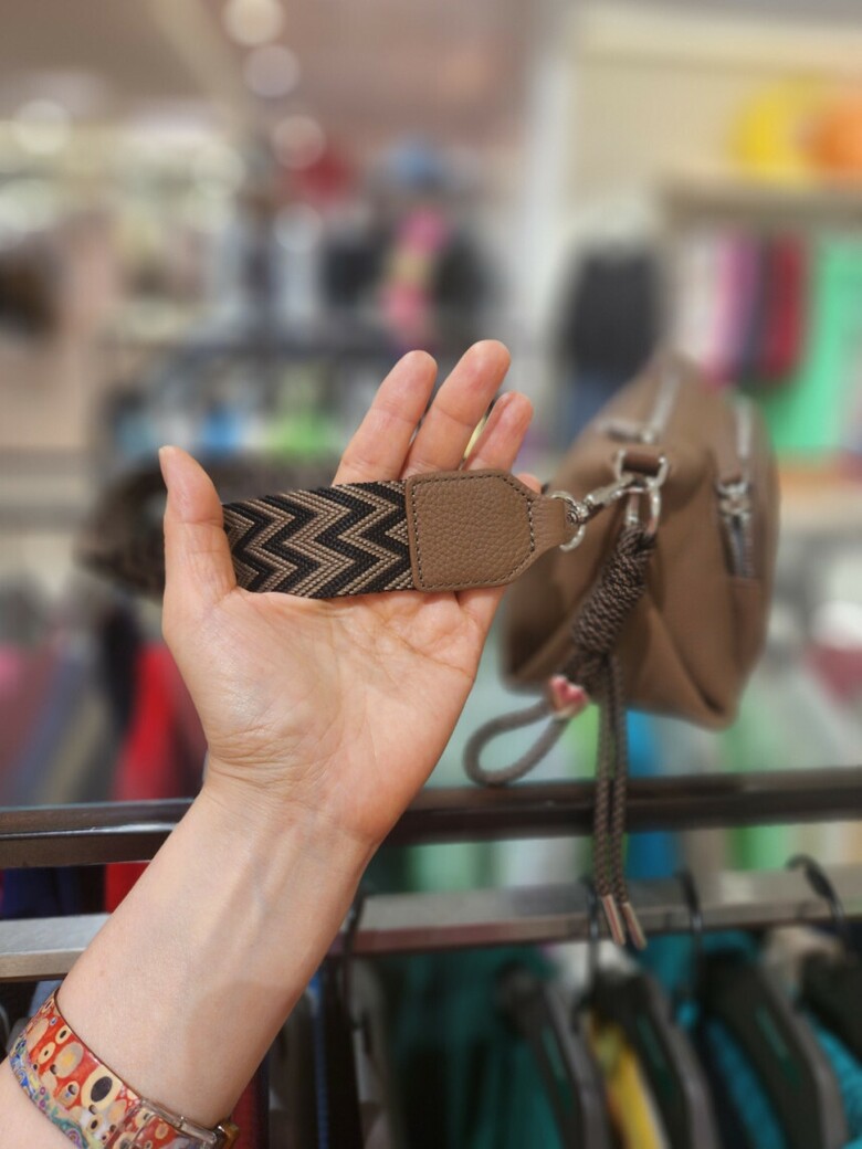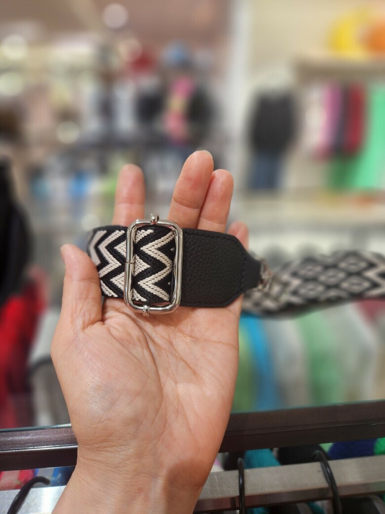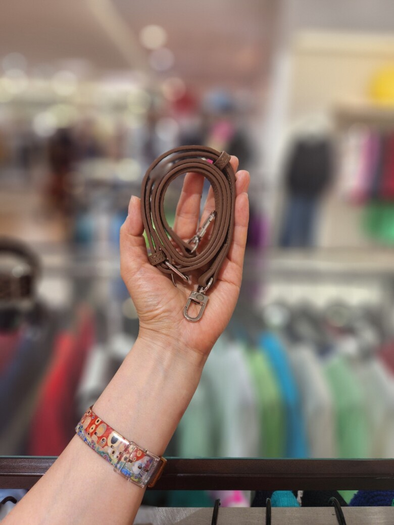 가방 소재와 같은 얇은 두께의 민무늬 가죽 스트랩 두가지입니다