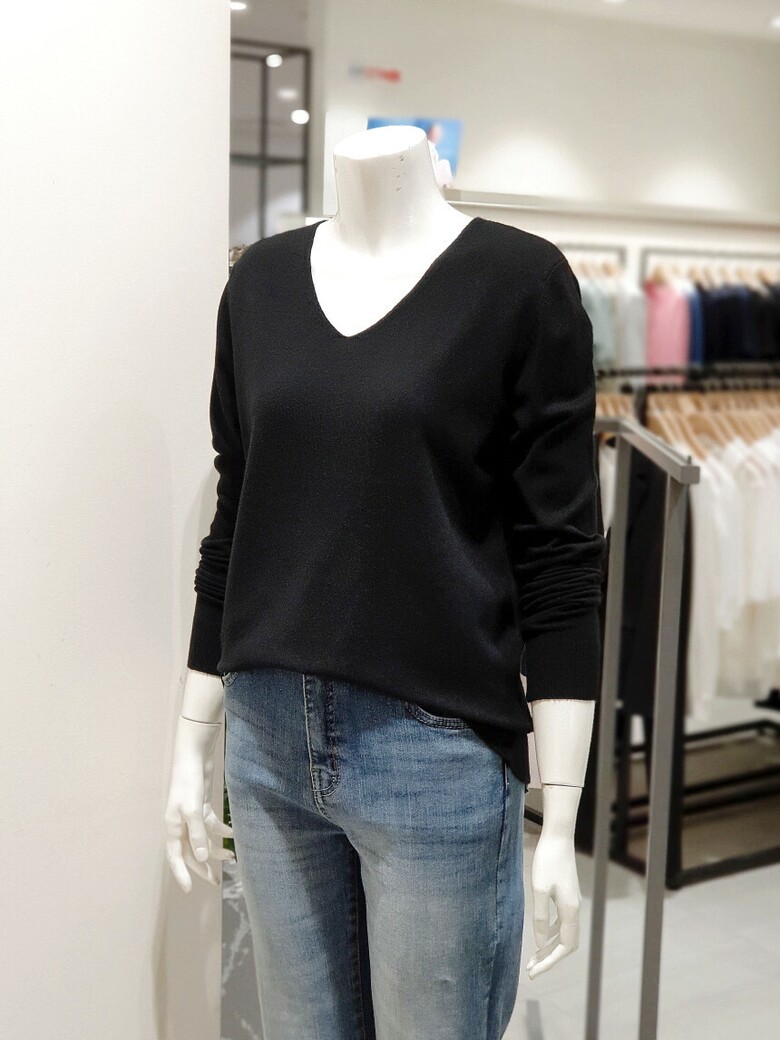 부드럽고 가벼운 소재감의 기본 브이넥 풀오버 니트입니다.