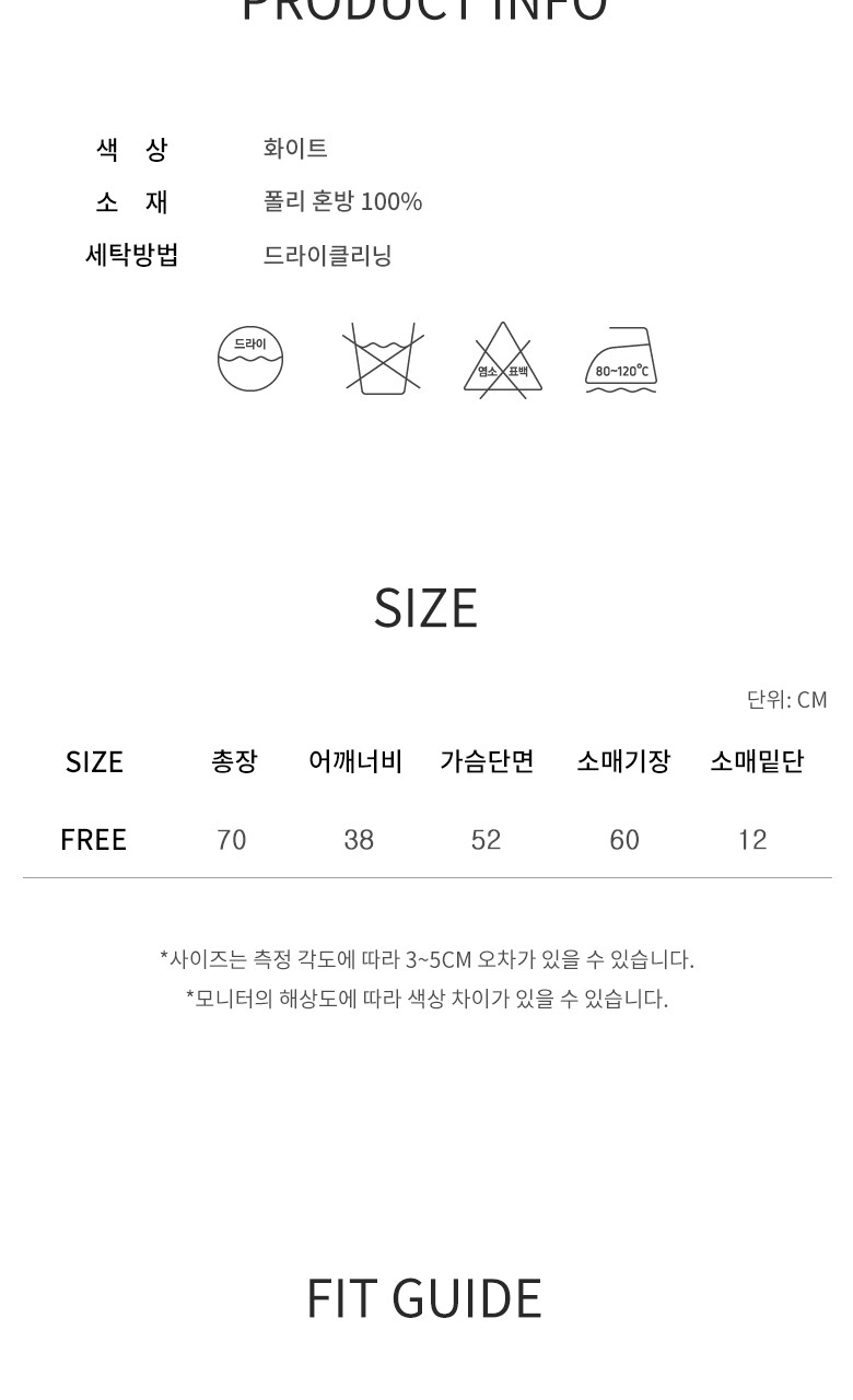 • 처음 배송된 상품상태와 다를 경우(세탁/착용 후 외출하신 경우) 반품이 불가합니다.