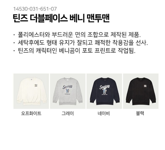 | 1. 제품 소재 (섬유의 조성 또는 혼용률을 백분율로 표시, 기능성인 경우 성적서 또는 허가서) | 상품상세참조 |