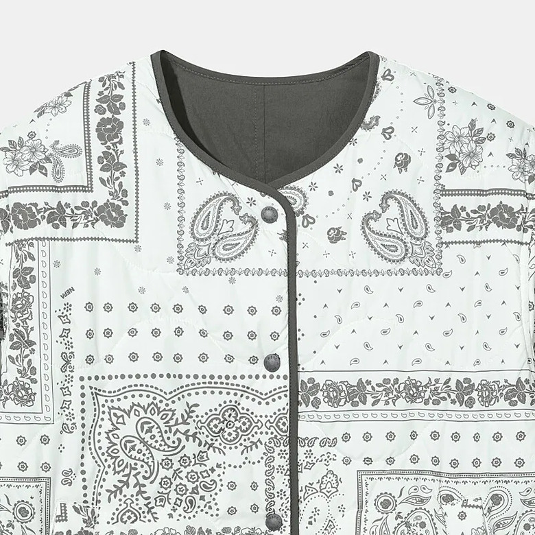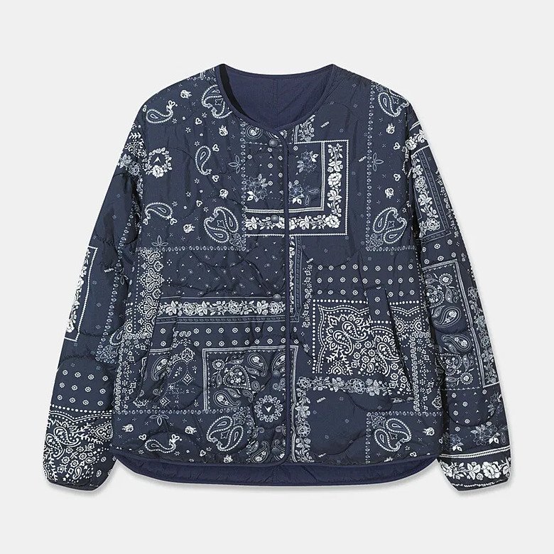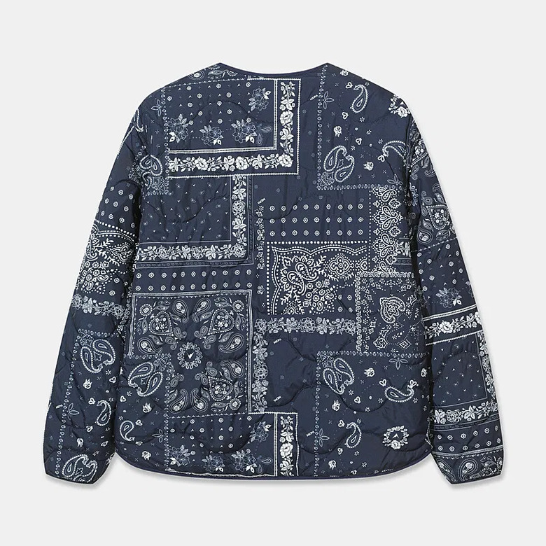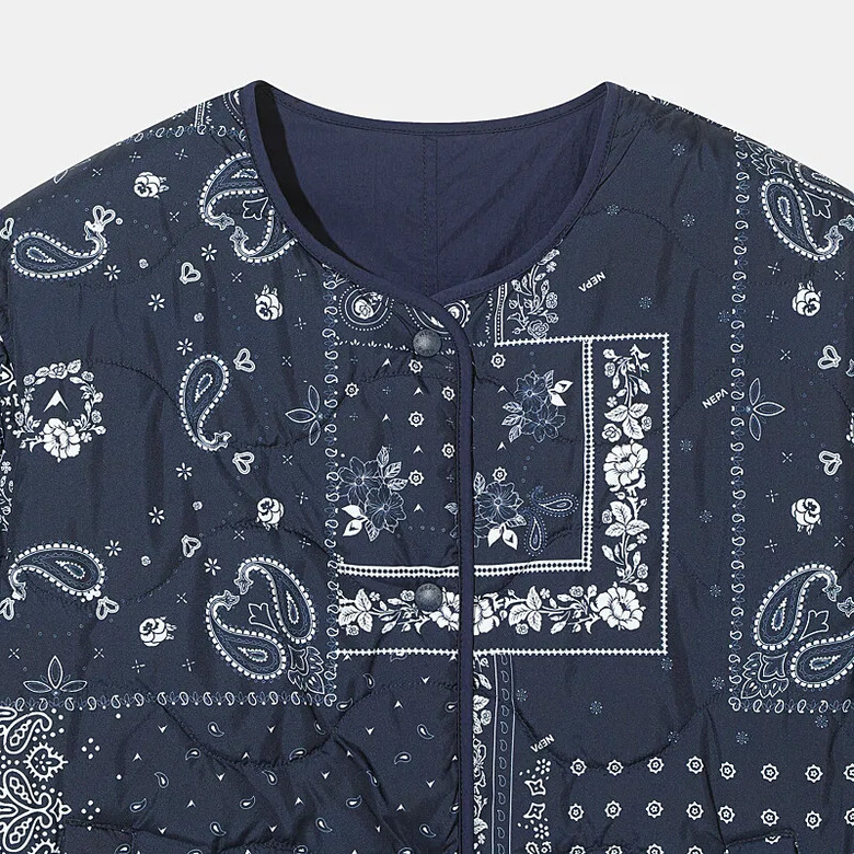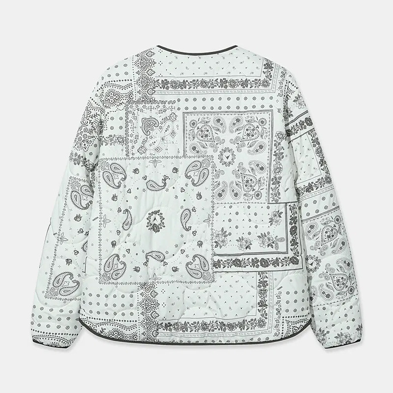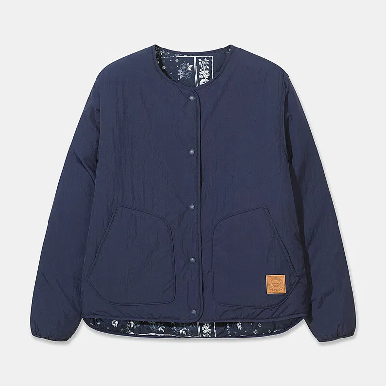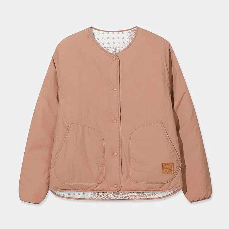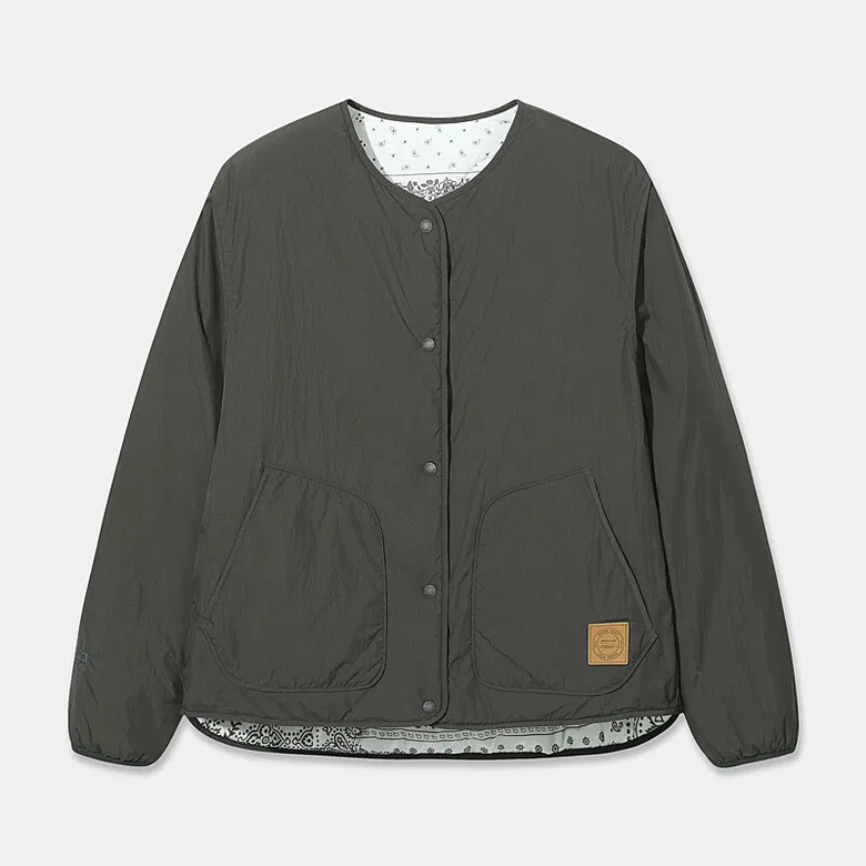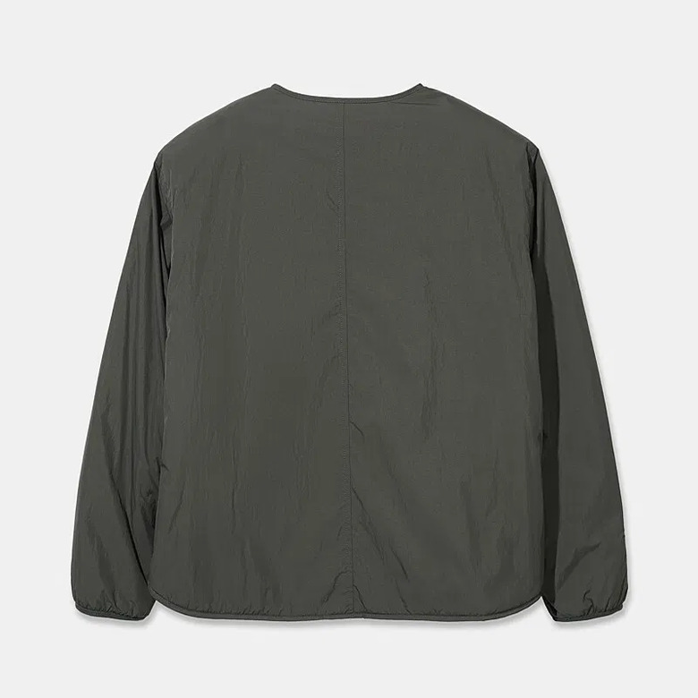- 넥리스 형태의 자켓으로 단품 착용은 물론 미들 레이어로의 활용성도 높은 스타일