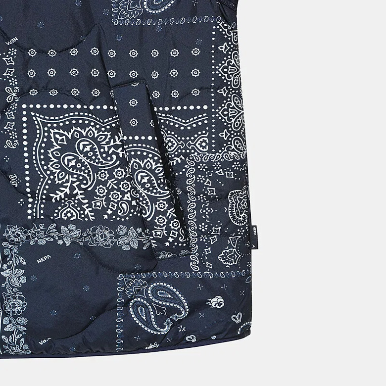 겉감1 폴리에스터 100% / 겉감2 나일론 100% / 주머니안감 폴리에스터 100% / 충전재 폴리에스터 100%