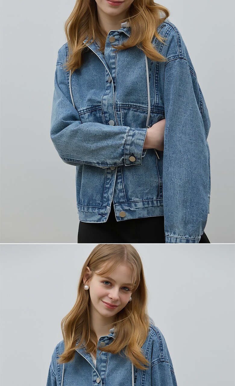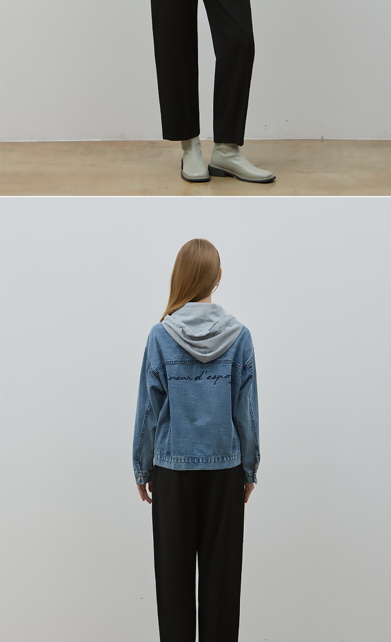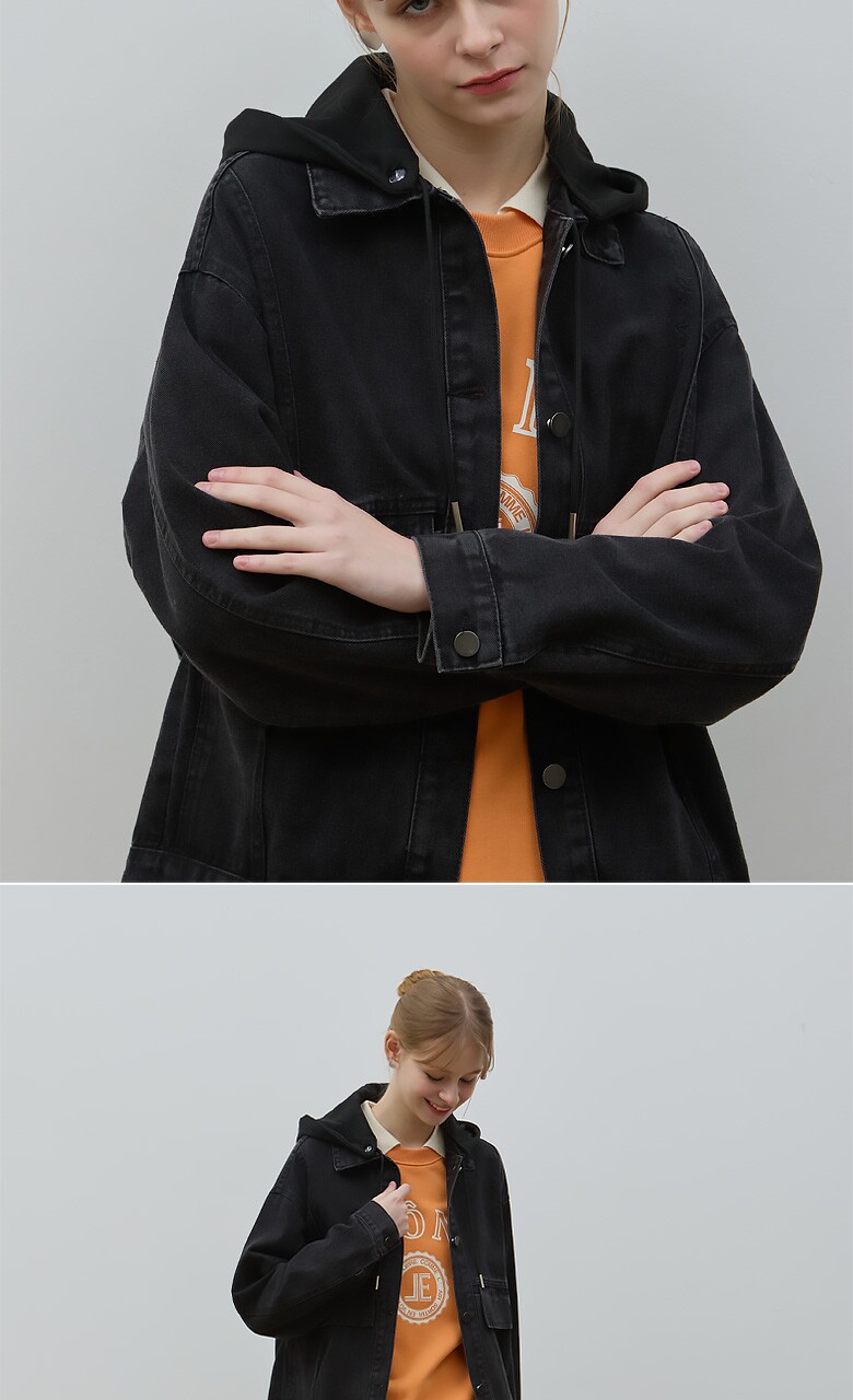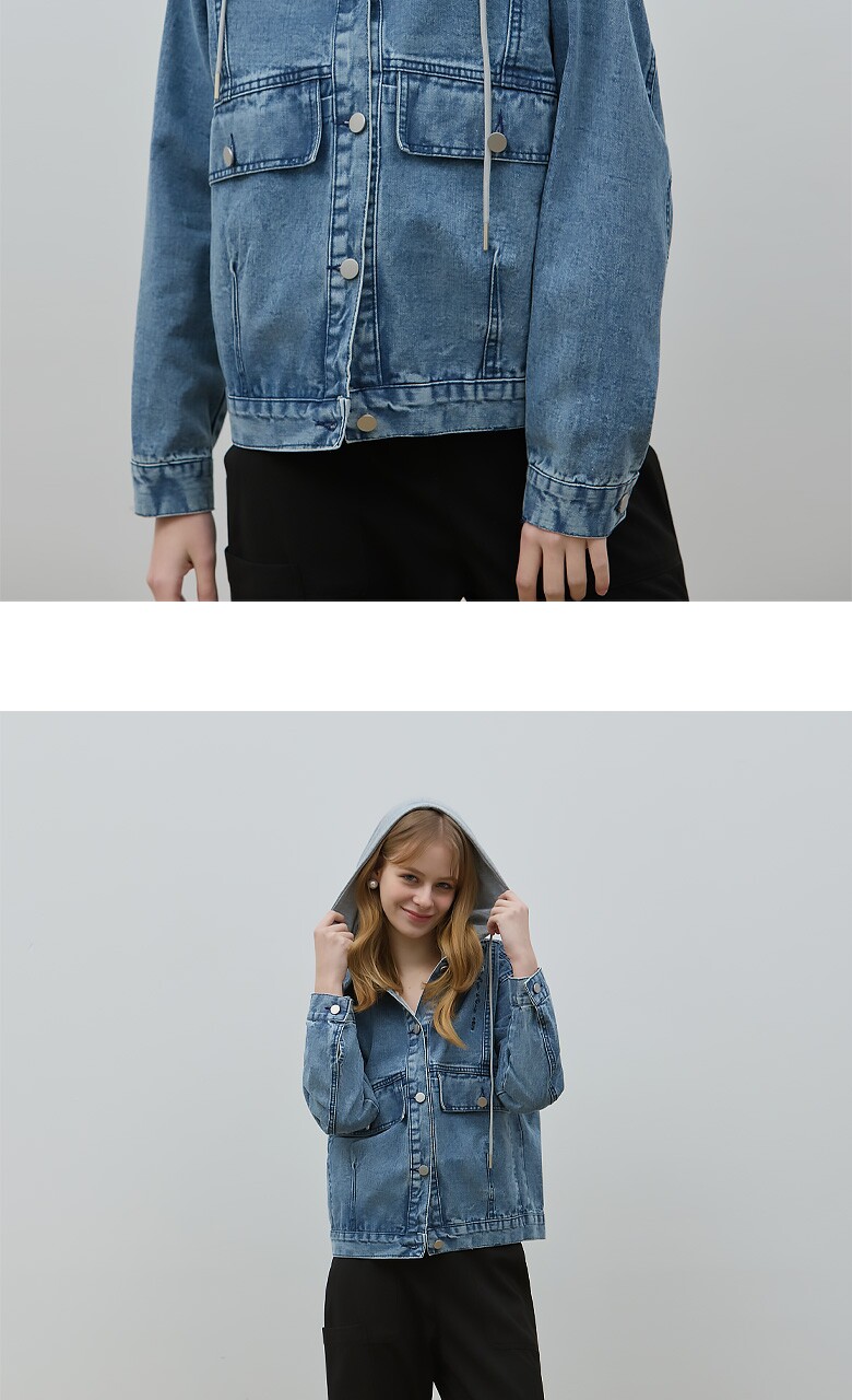가슴 포켓이 포인트인 후드 데님 자켓입니다. 브랜드만의 고급 소재를 활용하여 우수한 착용감을 선사합니다. 후드 탈부착 가능하여 다양한 코디를 연출할 수 있습니다.