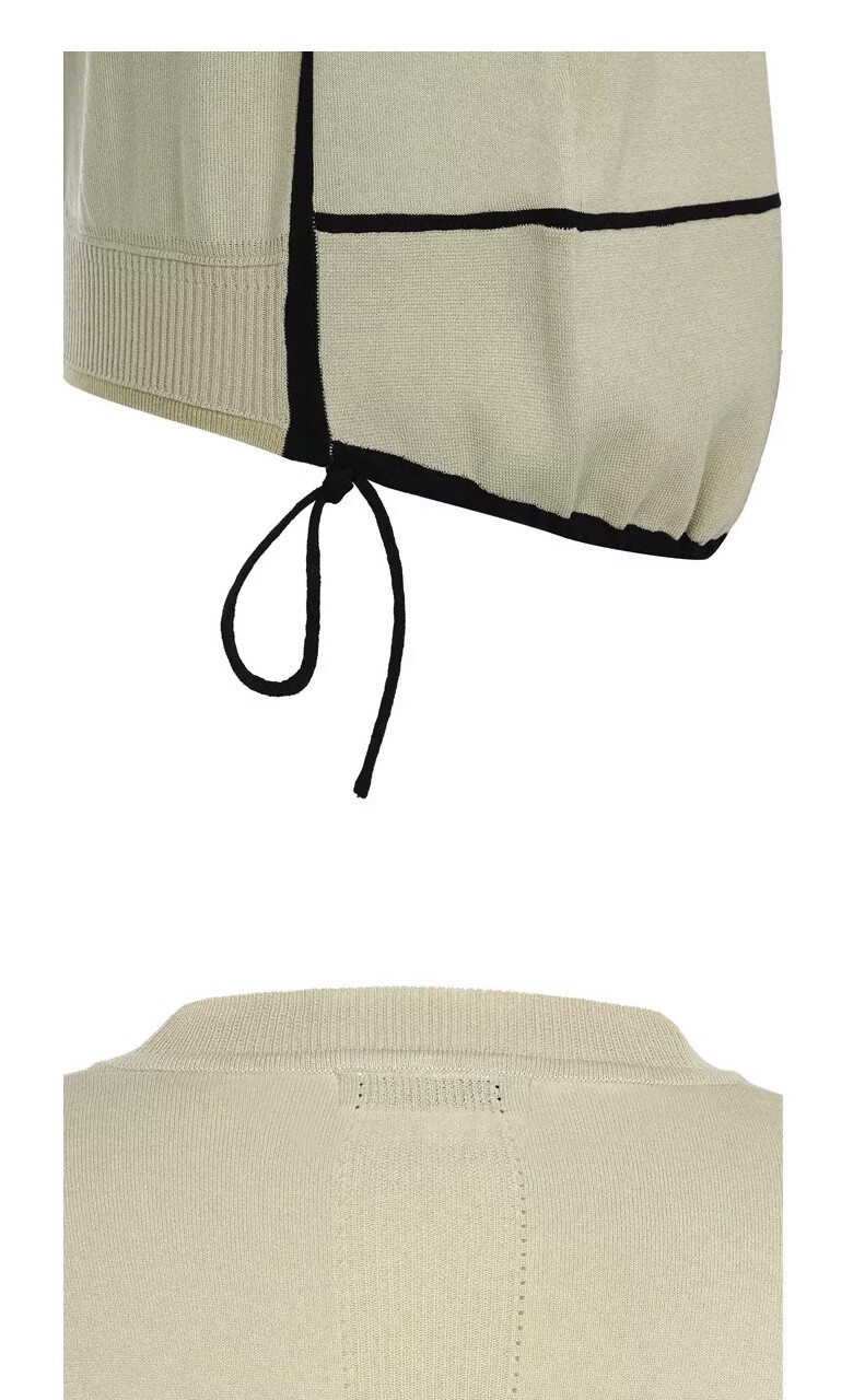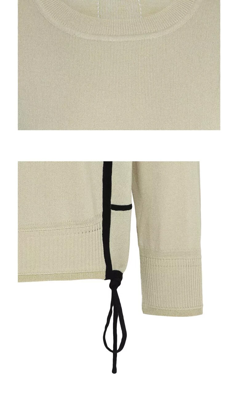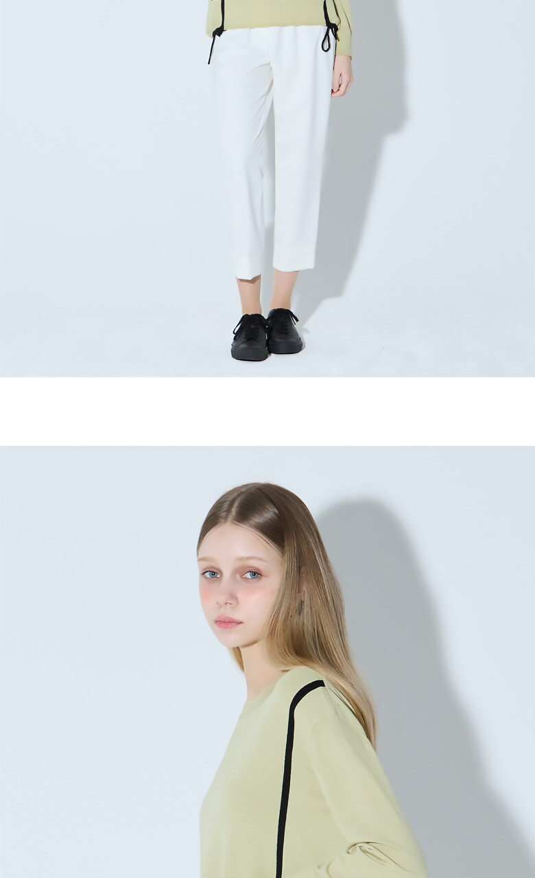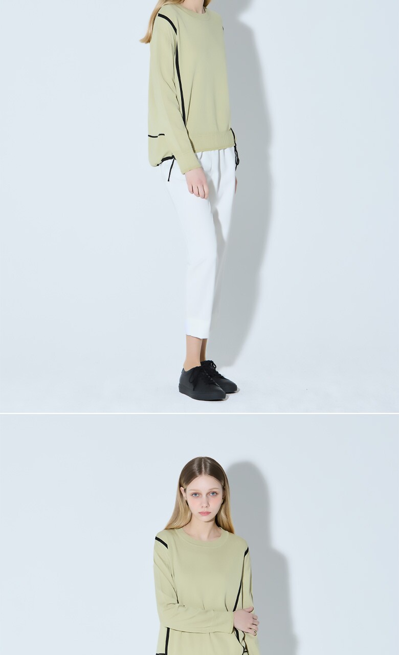 배색 라인과 밑단 스트링 디자인 세련된 니트 입니다. 브랜드만의 고급 소재를 활용하였으며 면소재로 활용으로 편안하고 우수한 착용감을 선사합니다. 가벼운 착용감으로 데일리하게 입기 좋은 아이템 입니다.