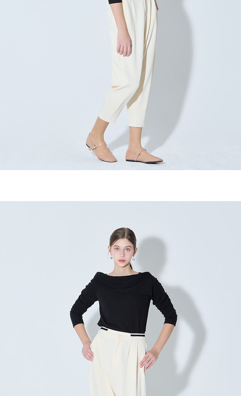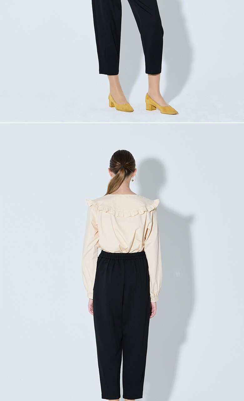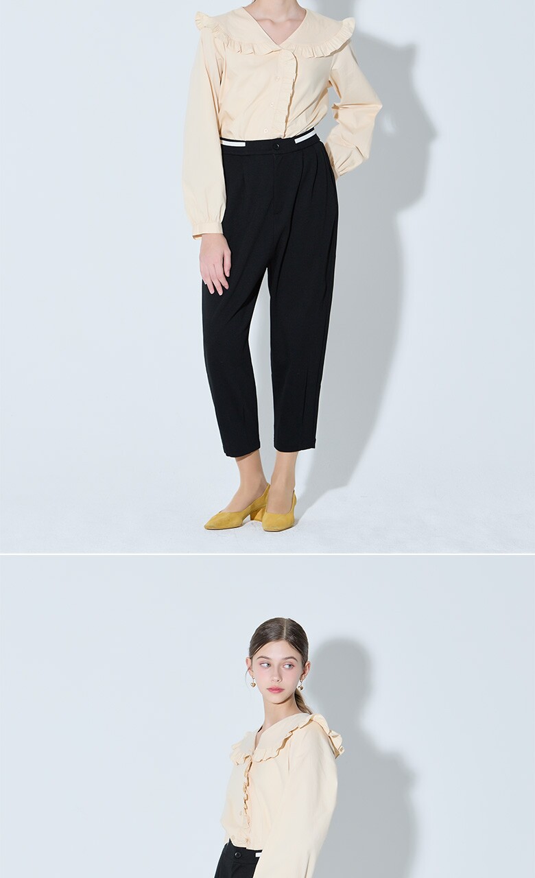 핀턱 디테일과 배기 팬츠가 어우러져 캐주얼하면서도 단정한 무드를 내는 팬츠입니다