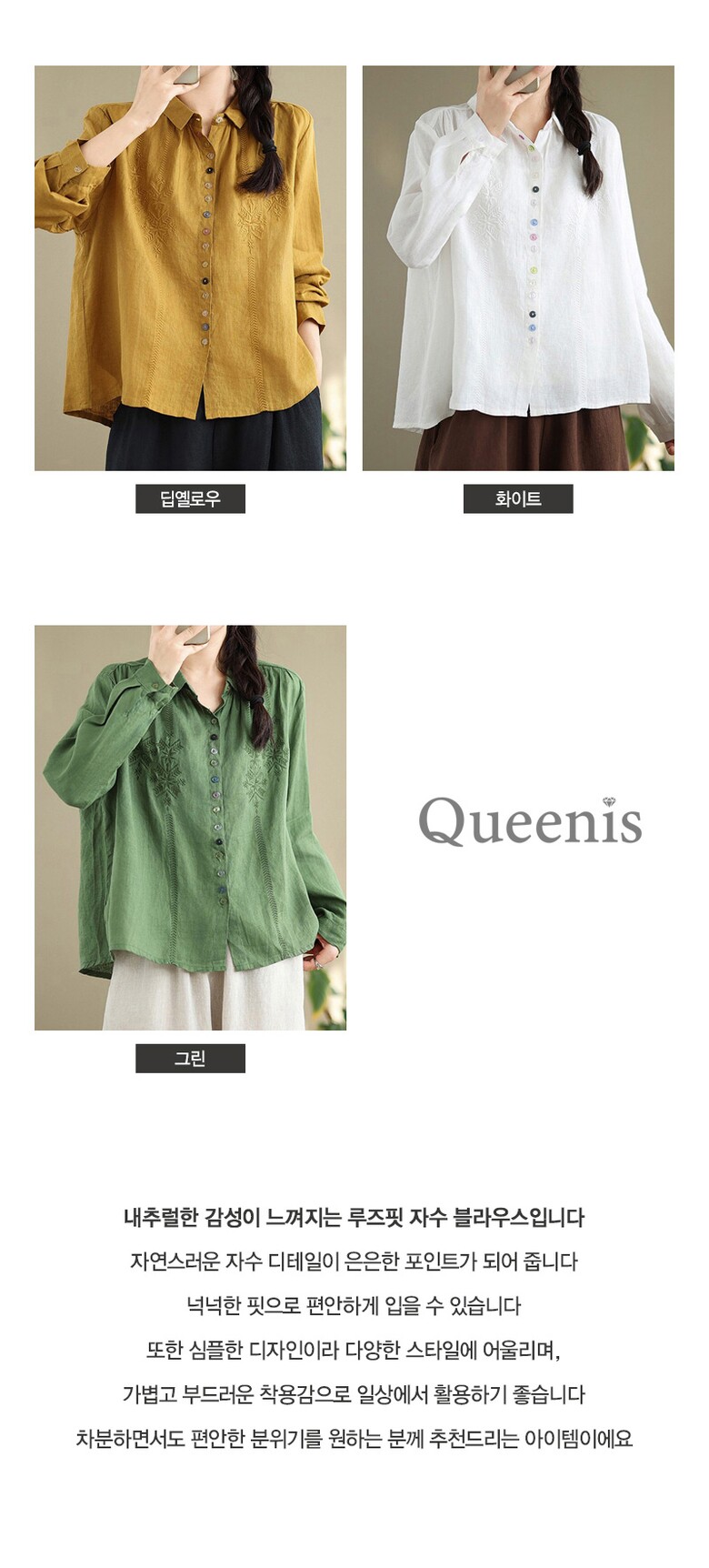 [~77까지]포이트 루즈핏 자수 버튼 블라우스