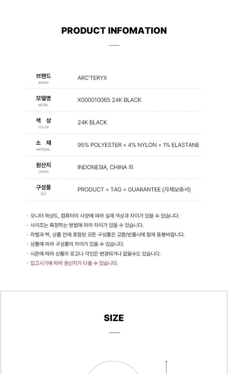 2. 소재 | 폴리에스터 95% + 나일론 4% + 엘라스테인 1% |
