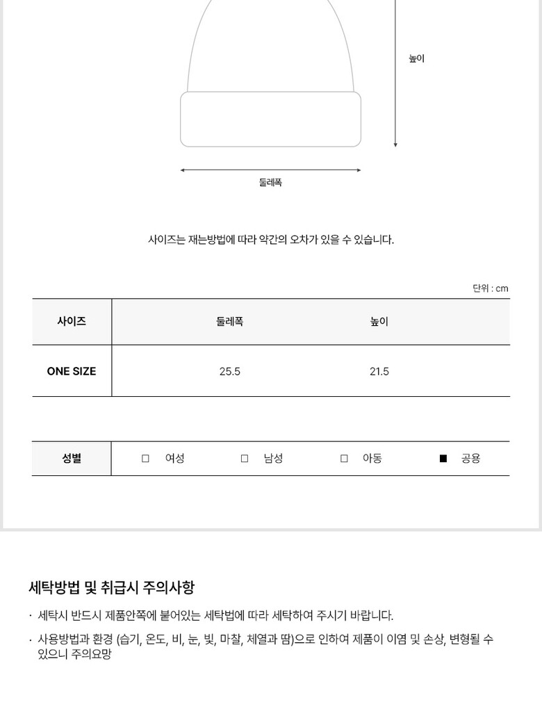 1. 종류 | 남녀공용 모자 |