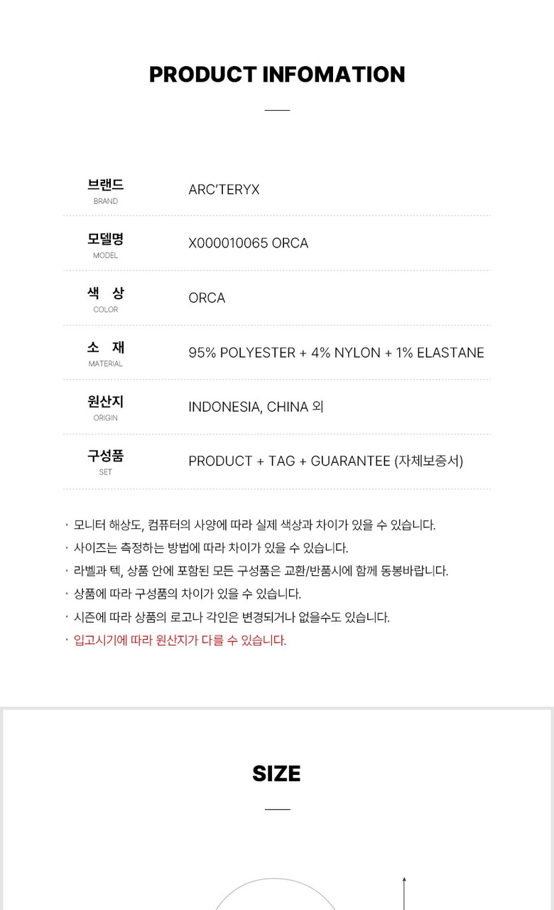 2. 소재 | 폴리에스터 95% + 나일론 4% + 엘라스테인 1% |