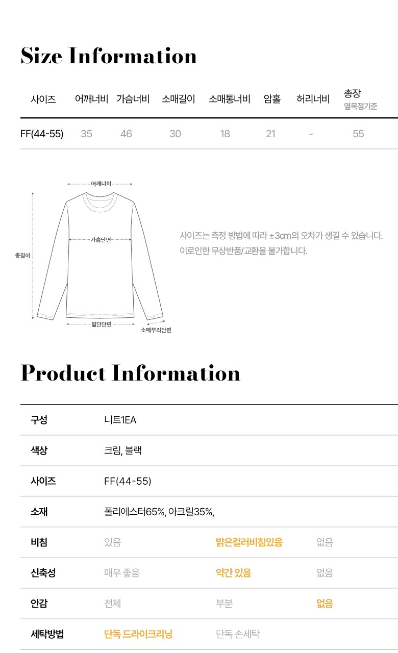 1. 제품 소재 (섬유의 조성 또는 혼용률을 백분율로 표시, 기능성인 경우 성적서 또는 허가서) | 폴리에스터65%, 아크릴35%, |