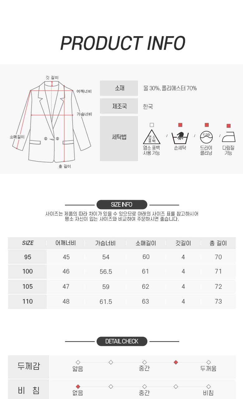 1. 제품 소재 (섬유의 조성 또는 혼용률을 백분율로 표시, 기능성인 경우 성적서 또는 허가서) | 폴리에스터70%,울30% |
