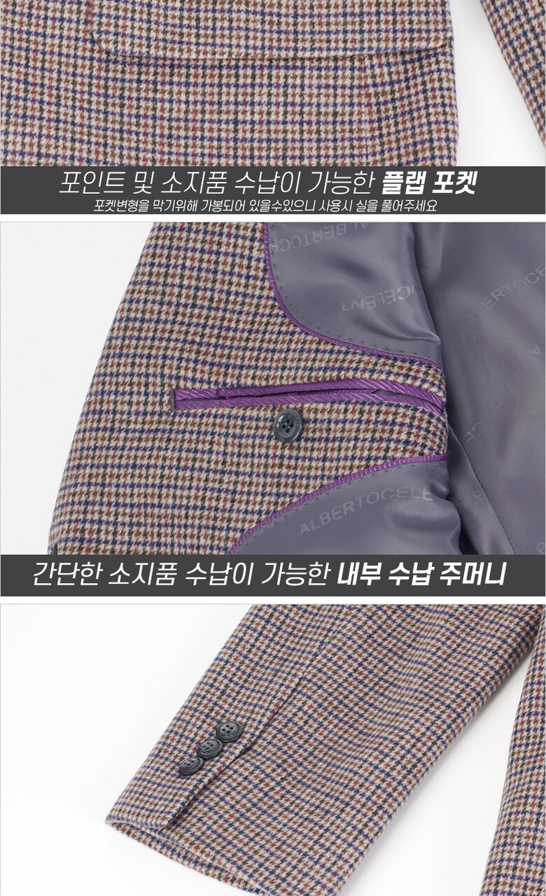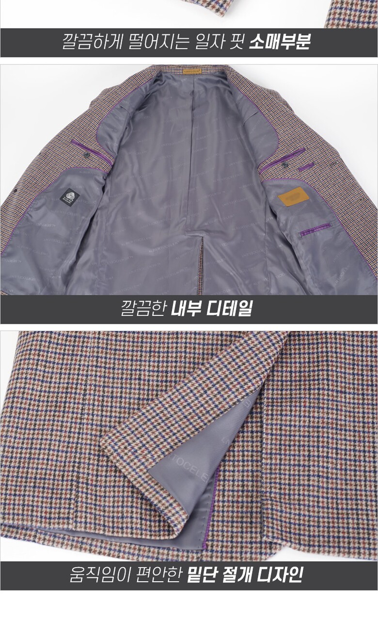 남성 체크 패턴 모직 콤비 자켓 HM-COA-56