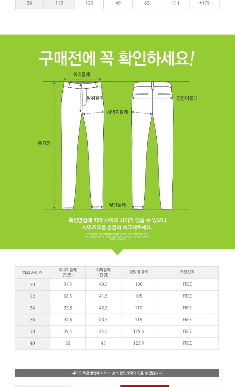 3. 치수 | 상의95-하의30, 상의95-하의32, 상의95-하의34, 상의95-하의36, 상의95-하의38, 상의95-하의40, 상의100-하의30, 상의100-하의32, 상의100-하의34, 상의100-하의36, 상의100-하의38, 상의100-하의40, 상의105-하의30, 상의105-하의32, 상의105-하의34, 상의105-하의36, 상의105-하의38, 상의105-하의40, 상의110-하의30, 상의110-하의32, 상의110-하의34, 상의110-하의36, 상의110-하의38, 상의110-하의40 |