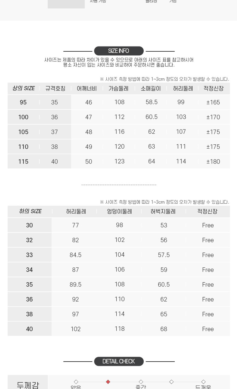 3. 치수 | 상의95-하의30, 상의95-하의32, 상의95-하의34, 상의95-하의36, 상의95-하의38, 상의95-하의40, 상의100-하의30, 상의100-하의32, 상의100-하의34, 상의100-하의36, 상의100-하의38, 상의100-하의40, 상의105-하의30, 상의105-하의32, 상의105-하의34, 상의105-하의36, 상의105-하의38, 상의105-하의40, 상의110-하의30, 상의110-하의32, 상의110-하의34, 상의110-하의36, 상의110-하의38, 상의110-하의40 |