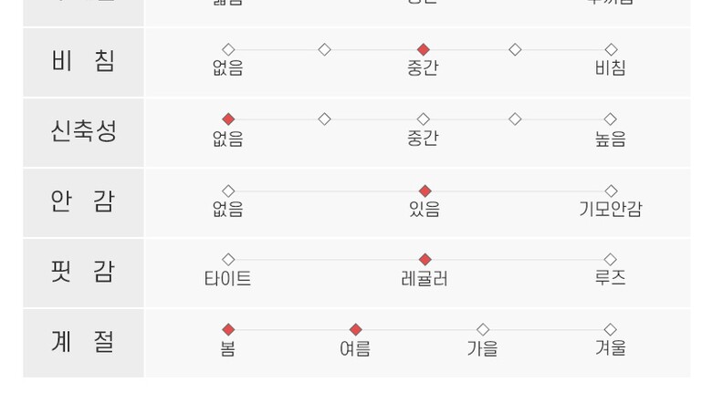 6. 세탁방법 및 취급시 주의사항 | 드라이클리닝,다림질가능 |