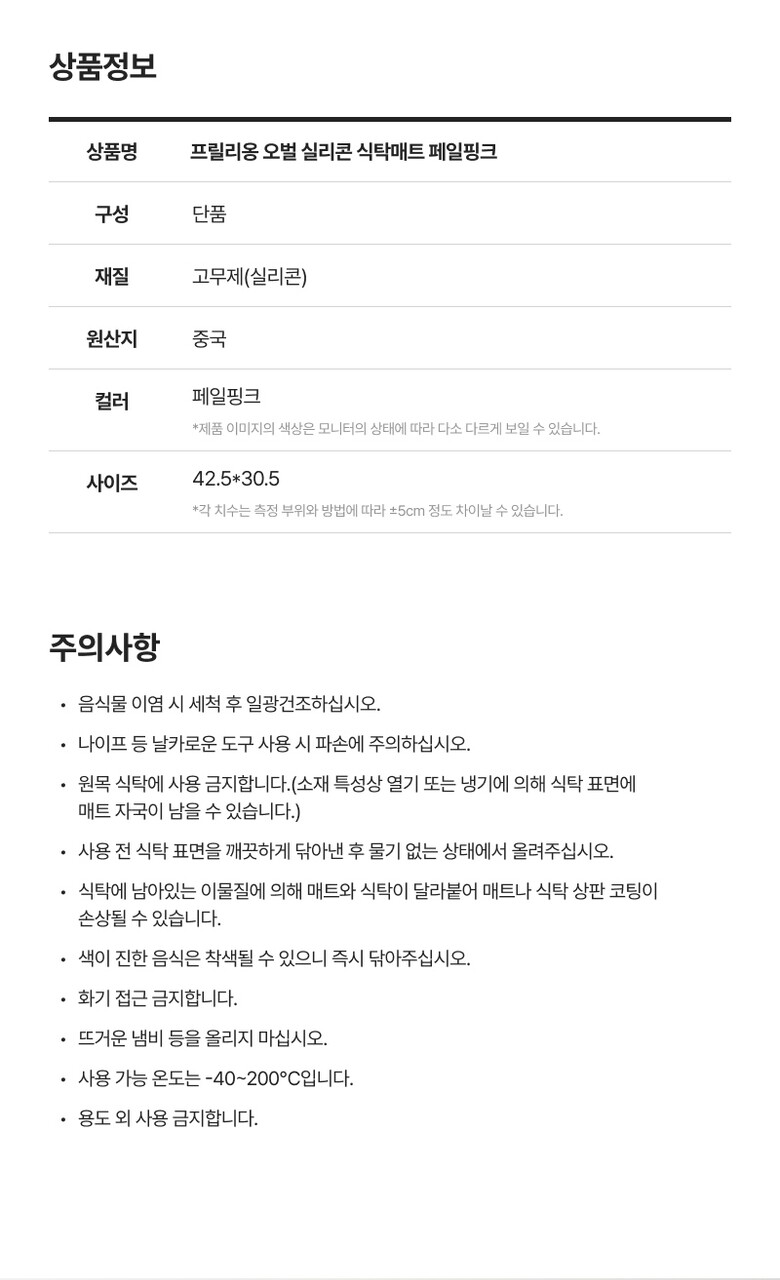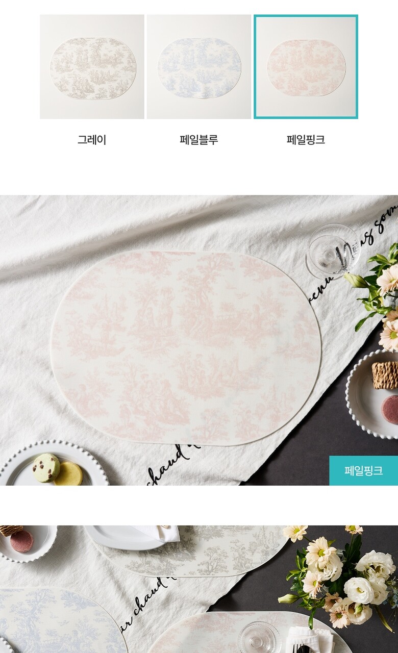 모던하우스 프릴리옹 오벌 실리콘 식탁매트 페일핑크 PL9925004