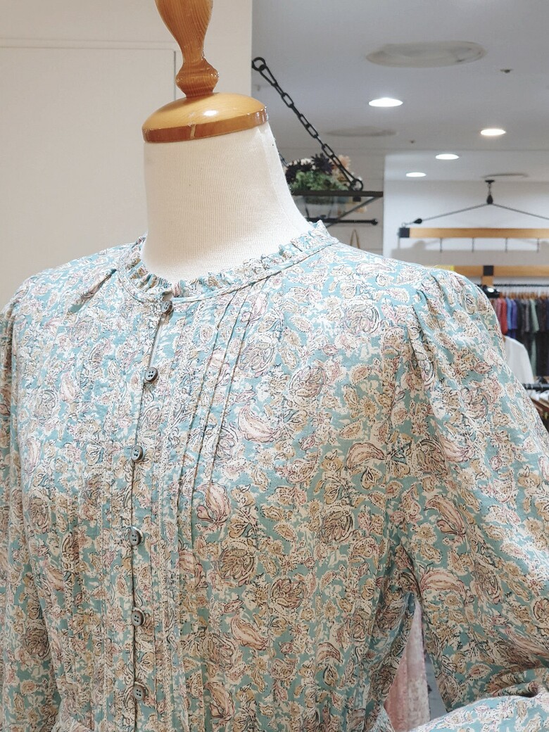 페이즐리 패턴이 돋보이며 핀턱으로 맵시를 더하는
