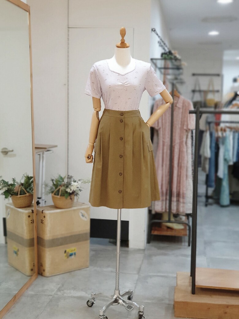 코튼 트윌 A라인 스커트 T246MSK136W