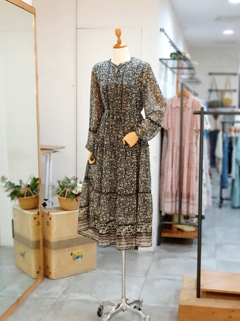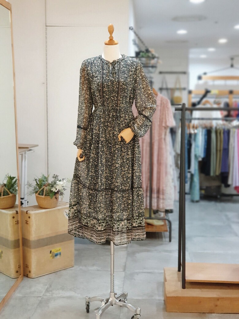 핀턱 플라워 보더 롱 원피스 T246MOP157W
