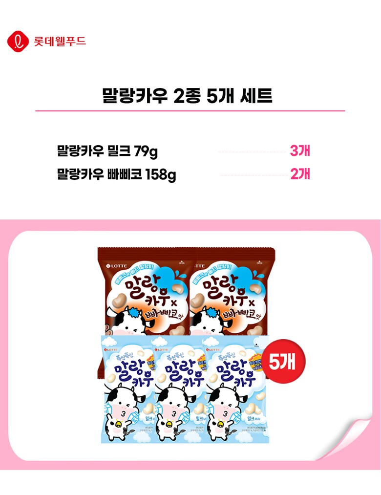 [롯데] 말랑카우 2종 5개 (밀크 3+빠삐코 2)