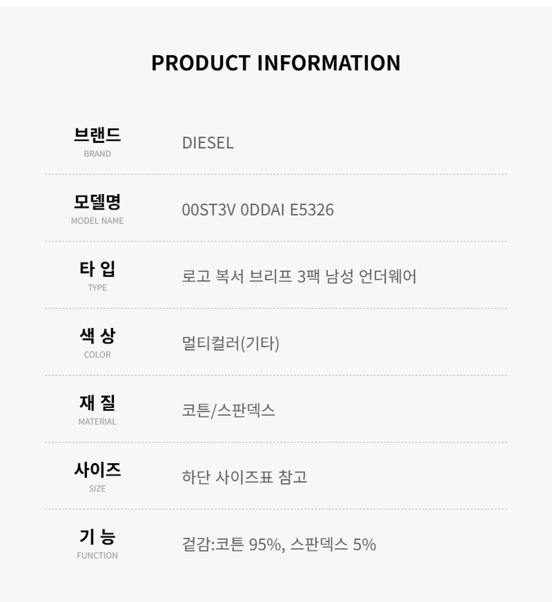 디젤 언더웨어 00ST3V 0DDAI E5326 로고 복서 브리프 3팩 남성언더웨어 당일발송