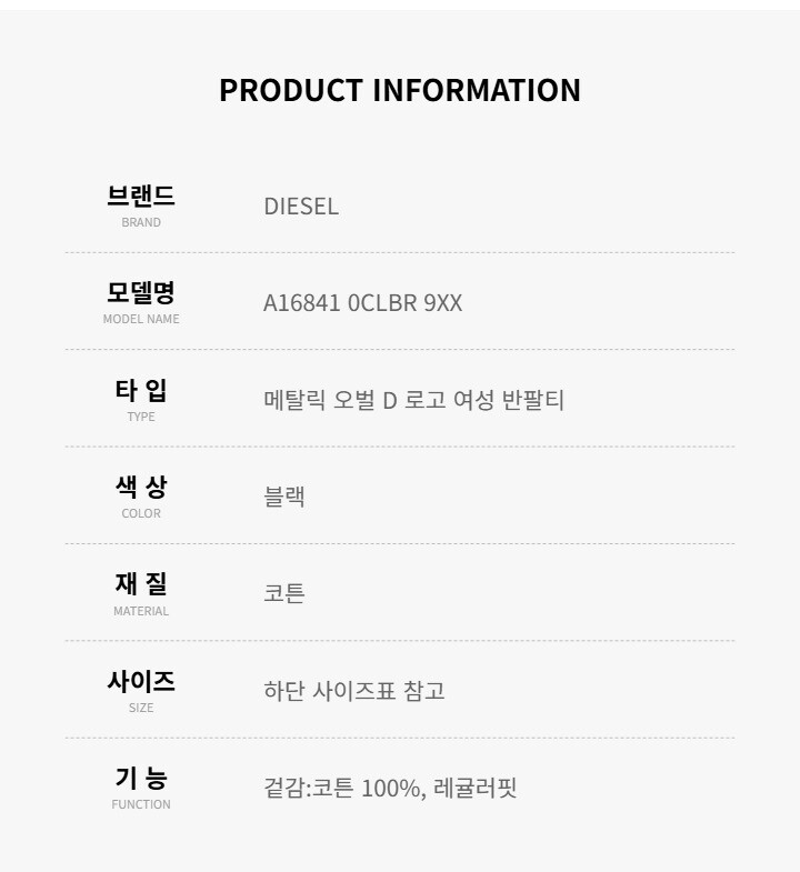 디젤 반팔 A16841 0CLBR 9XX 메탈릭 오벌 D 로고 여성반팔티 당일발송