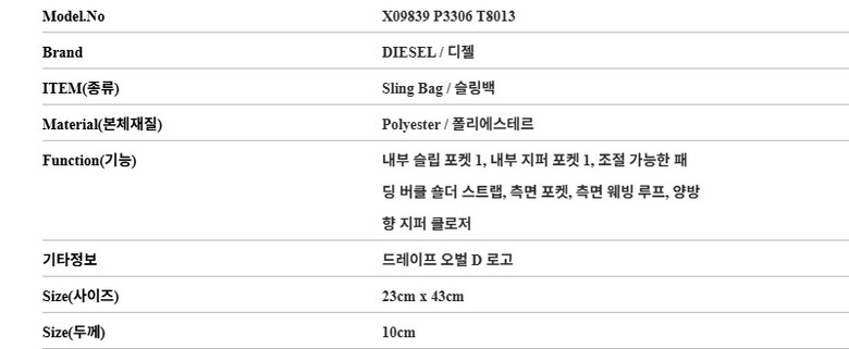 디젤 가방 X09839 P3306 T8013 드레이프 오벌 D 로고 남성슬링백 당일발송