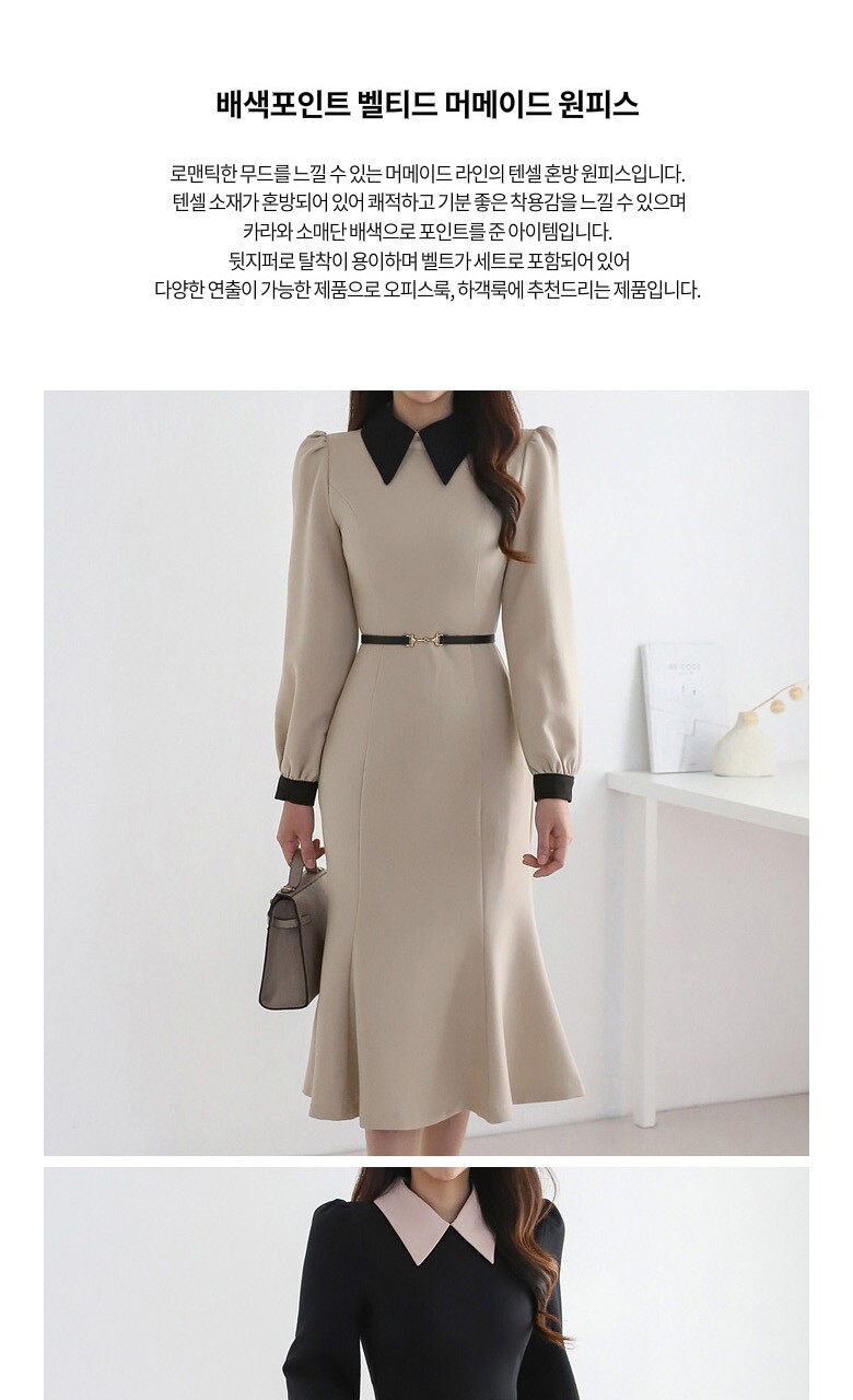 [55-66]배색포인트 벨티드 머메이드 원피스_PM2509OP058C