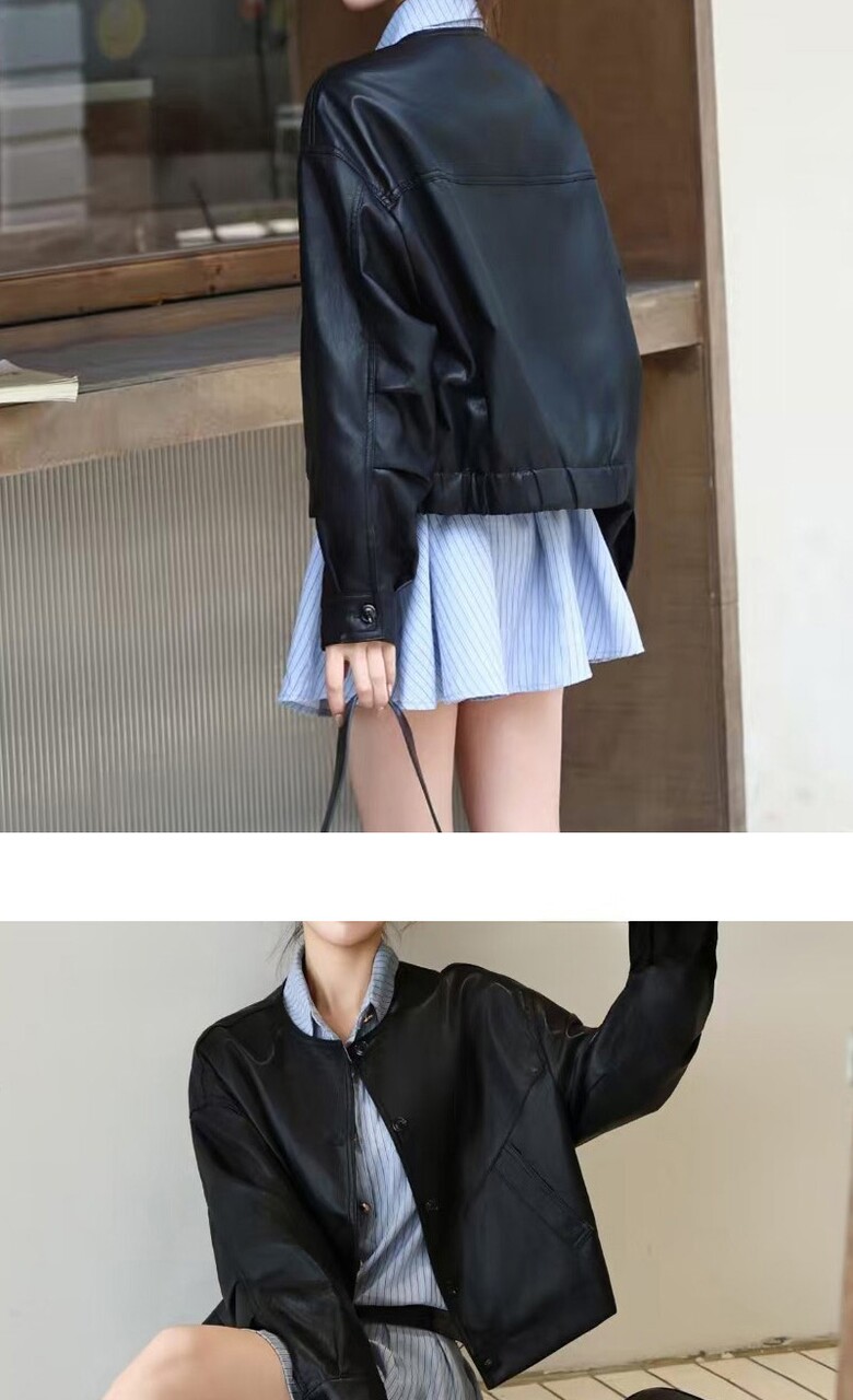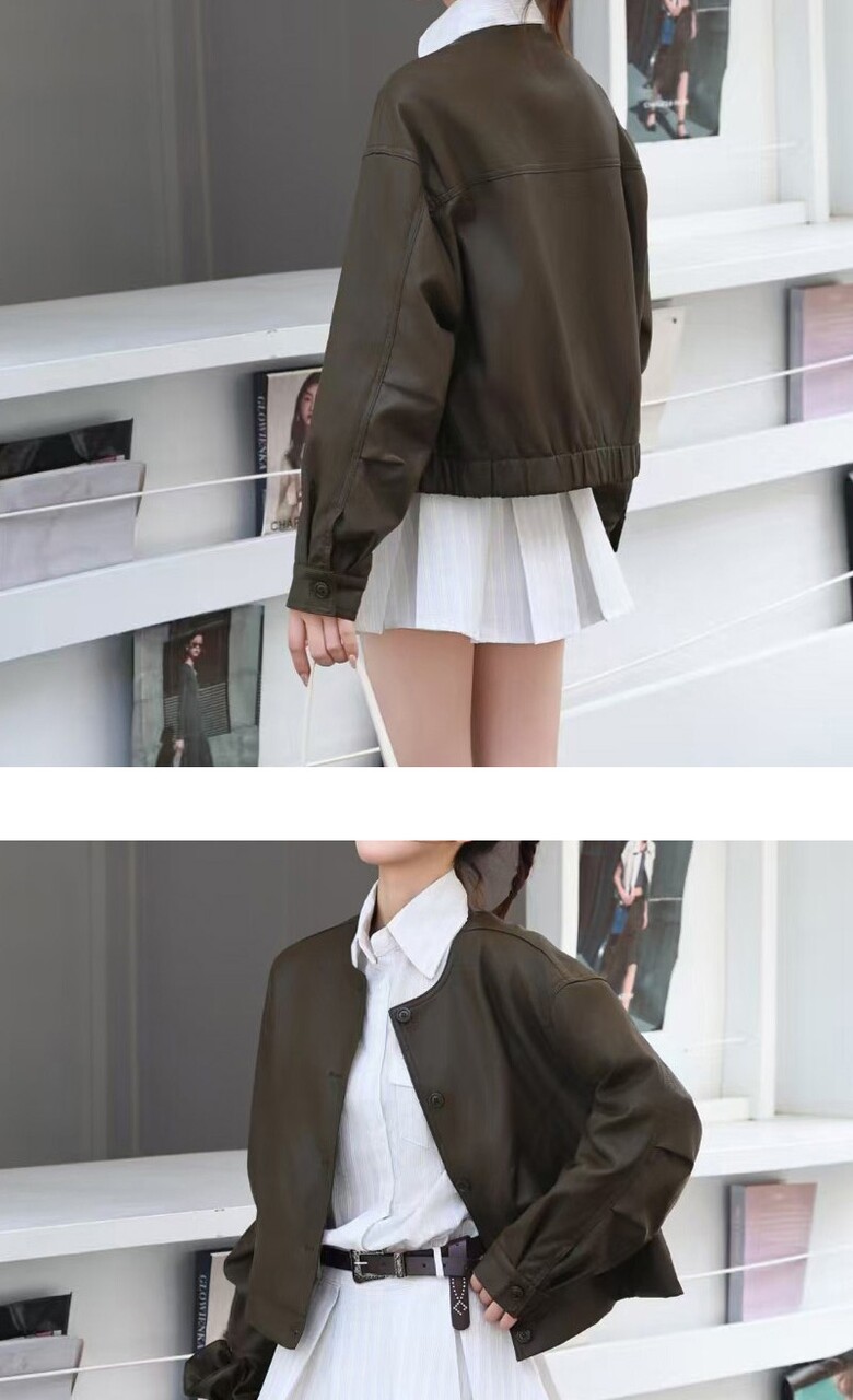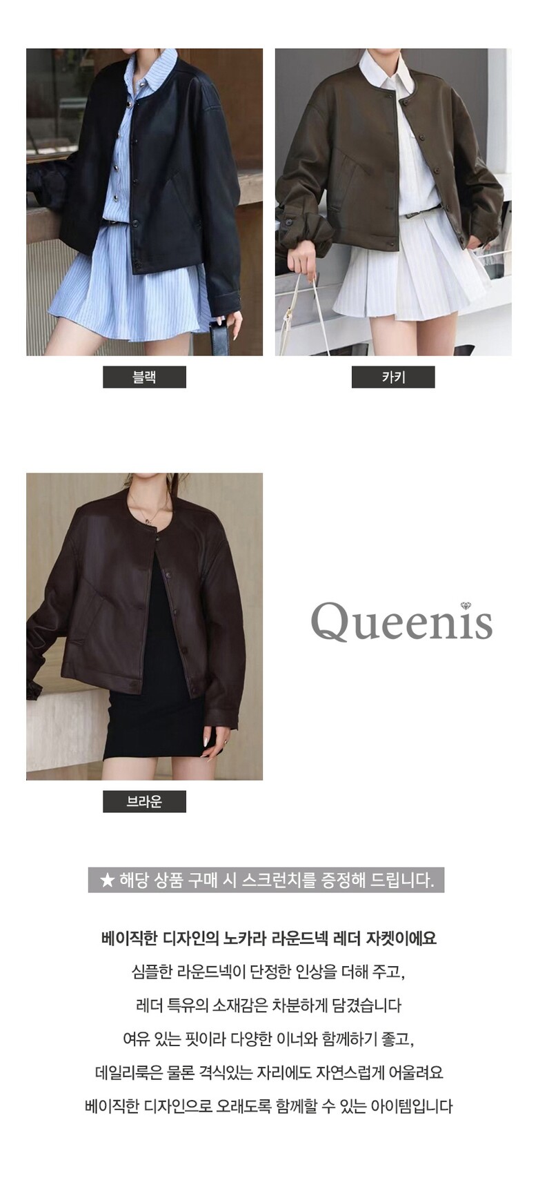 [스크런치증정][~77까지]퍼티 노카라 라운드넥 레더 자켓