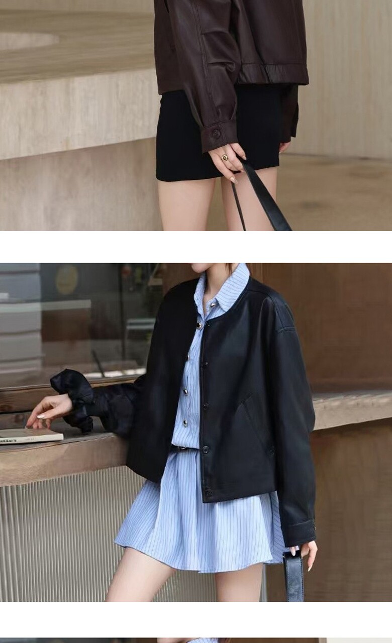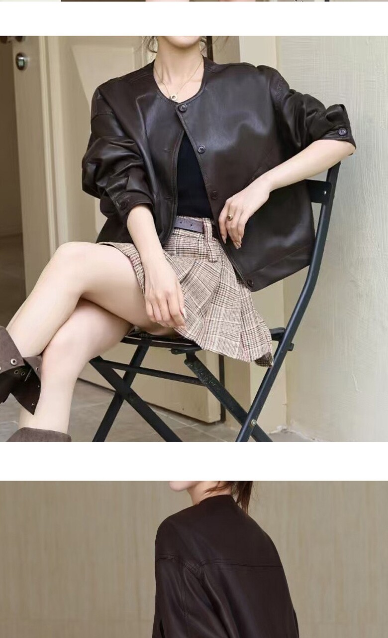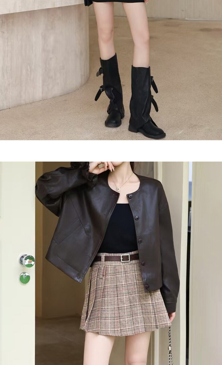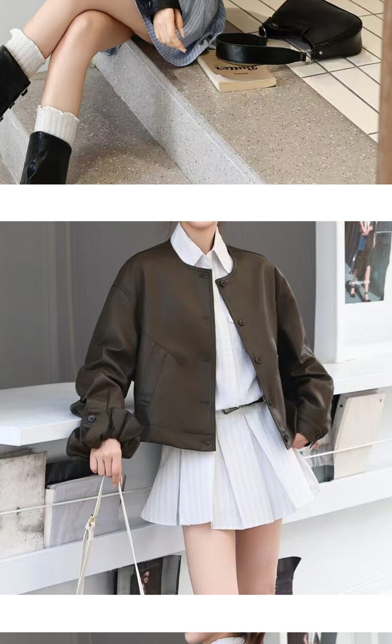 [스크런치증정][~77까지]퍼티 노카라 라운드넥 레더 자켓