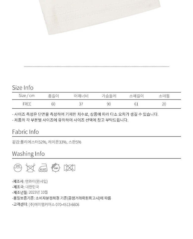 | 6. 세탁방법 및 취급시 주의사항 | 상세페이지및 라벨참조 |