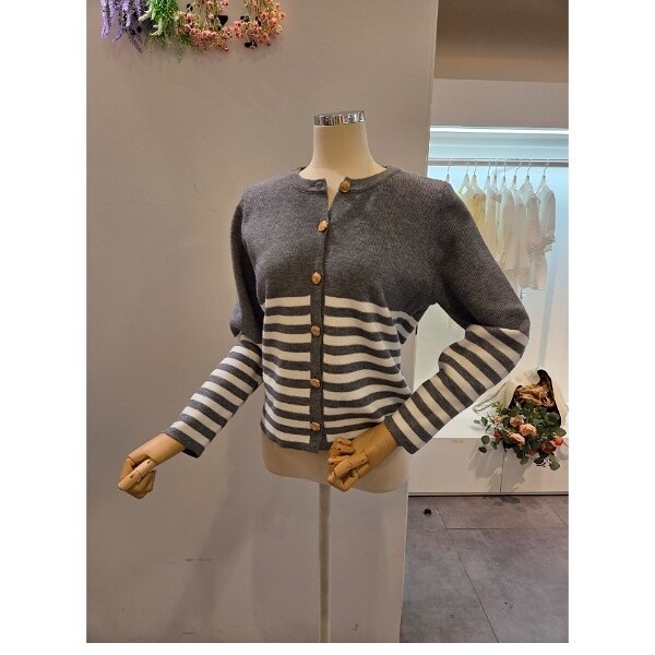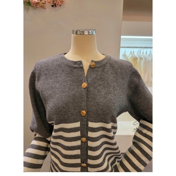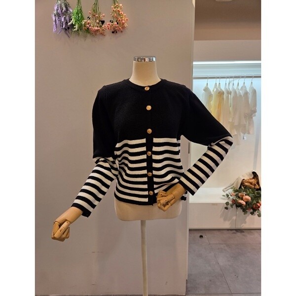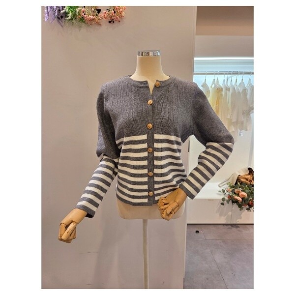 CP7WKC02_금장 스트라이프 라운드 가디건