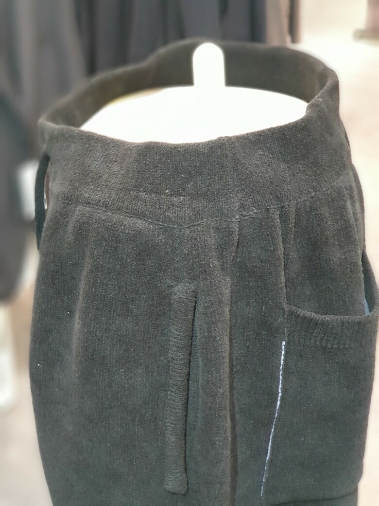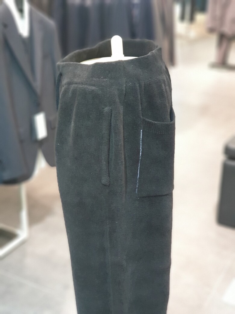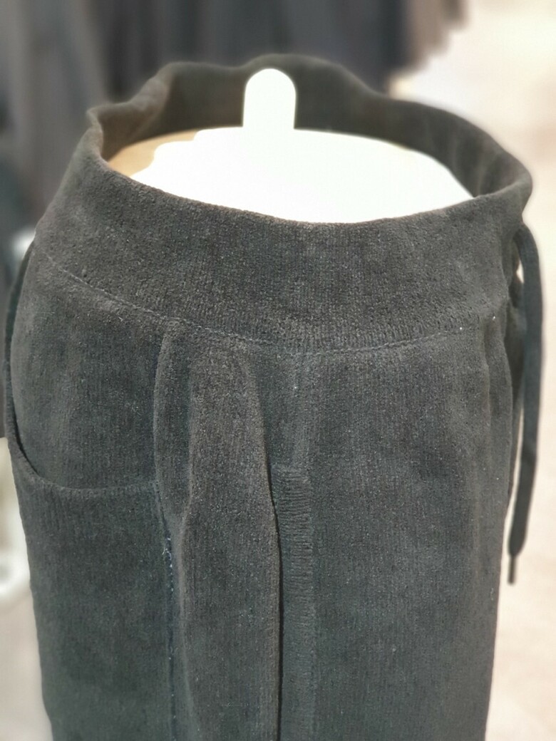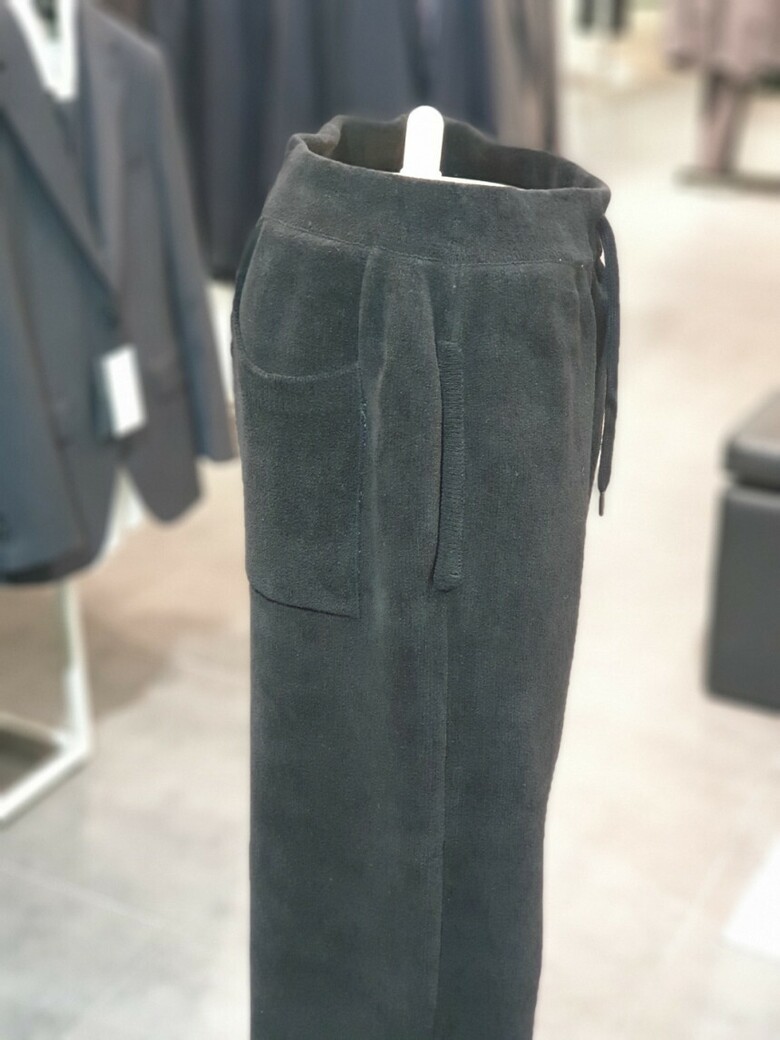 BON 23FW 블랙 테리우스 셔닐 수면사 나트 와이드 팬츠 밴딩바지 BN3WTA383BK