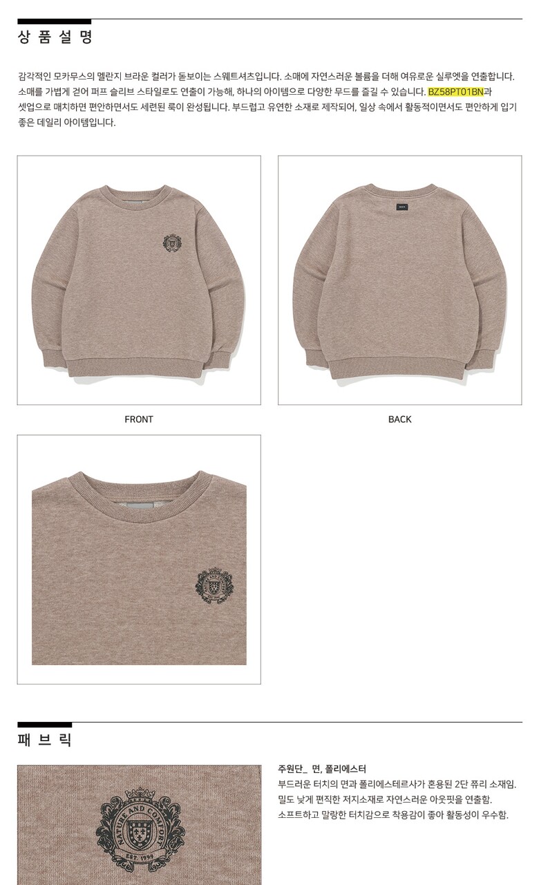 BZ58TS02BN_브라운 멜란지 볼륨 맨투맨 티셔츠
