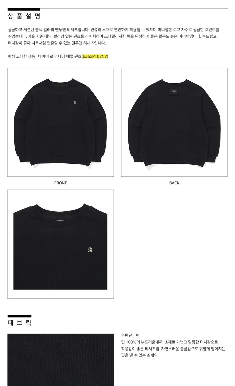 BZ53TS04BK_블랙 맨투맨 티셔츠