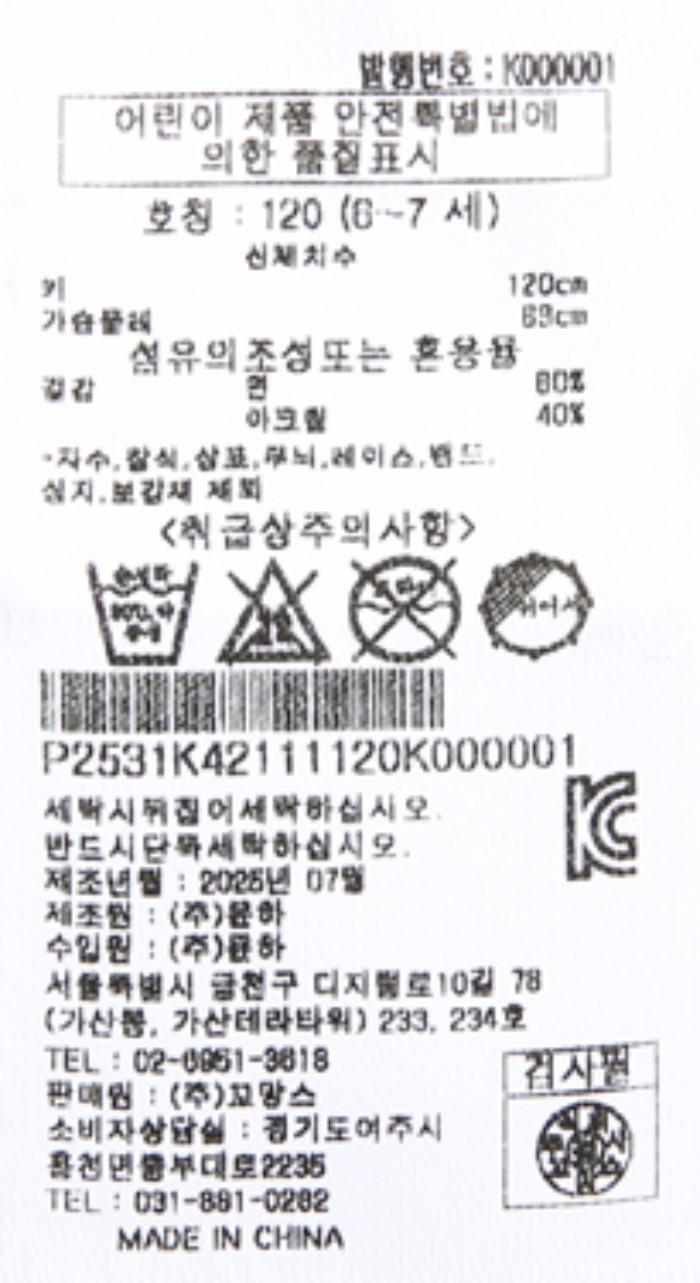제조자 : (주)꼬망스
