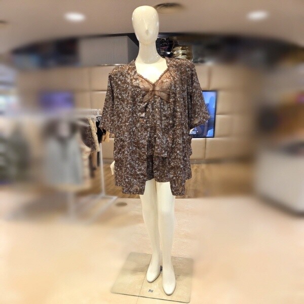 바바라 고급스러운 브라운 색상 번아웃 플라워 프린트 원단 로브 가운+상,하 세트