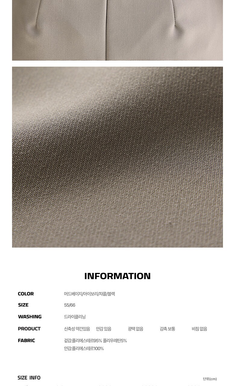 1. 제품 소재 (섬유의 조성 또는 혼용률을 백분율로 표시, 기능성인 경우 성적서 또는 허가서) | 겉감:폴리에스테르95% 폴리우레탄5% 안감:폴리에스테르100% |