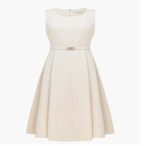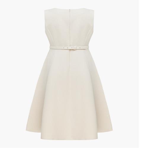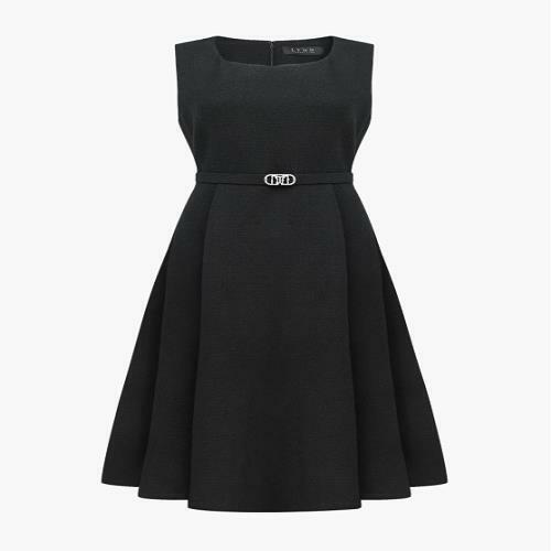함께 구성된 원피스는 안정감 있는 허리 라인과 풍성한 플레어 스커트가 여성스러운 분위기를 강조합니다.