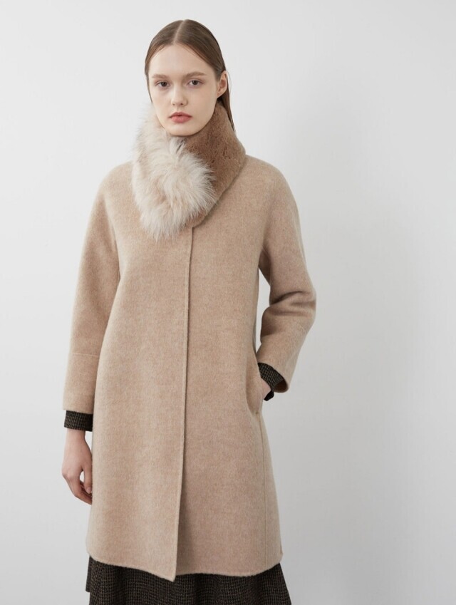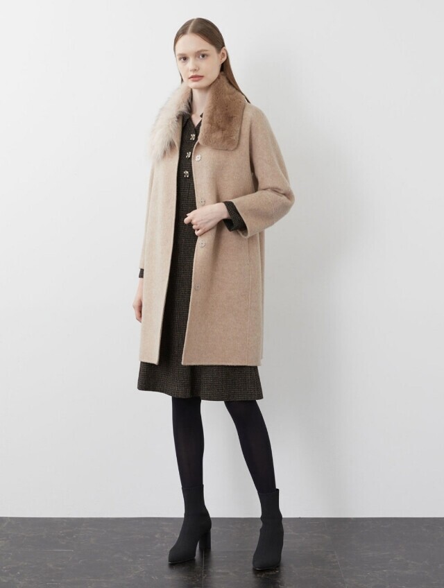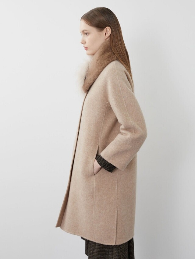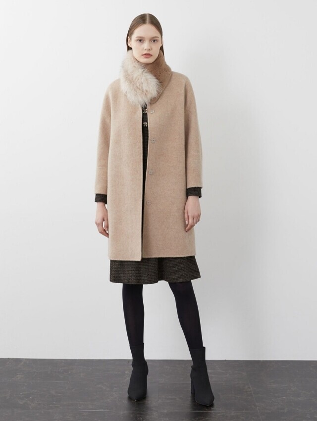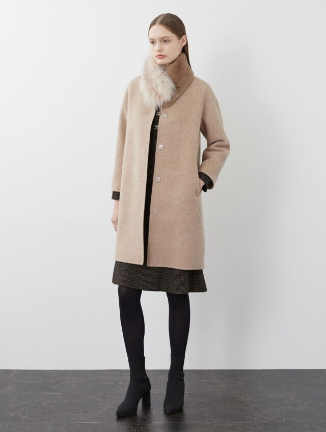 [올리비아로렌]폭스퍼 카라 탈부착 핸드메이드코트VOPEA3WA411