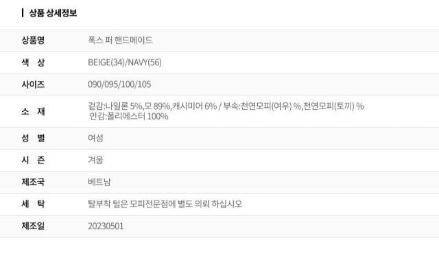 | 6. 세탁방법 및 취급시 주의사항 | 상품상세참조 |